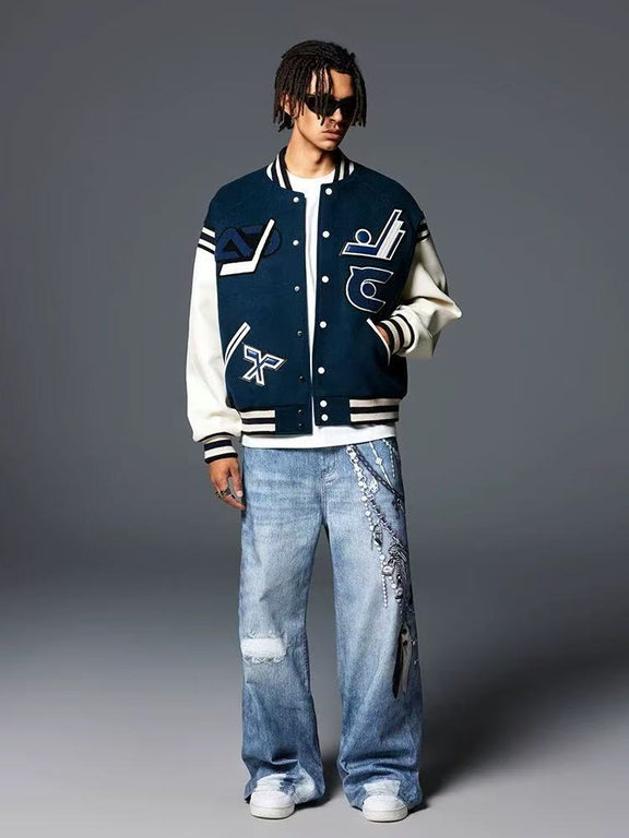 ACHOCK 3D Chain Printed Loose Jeans