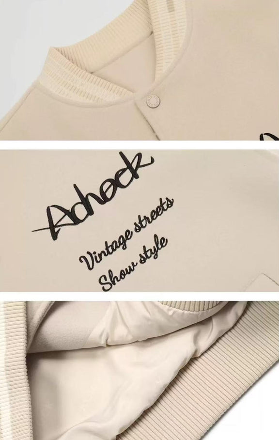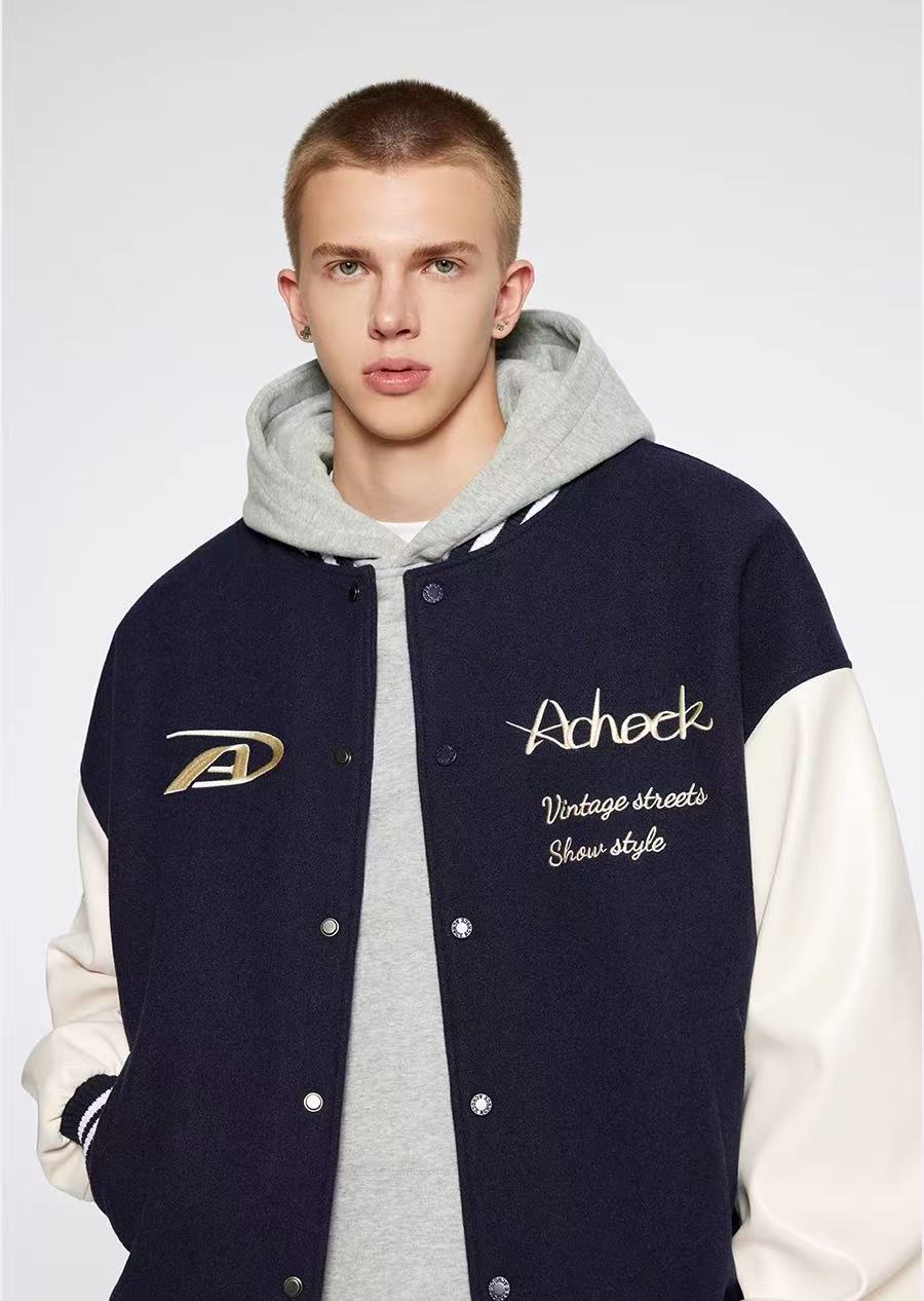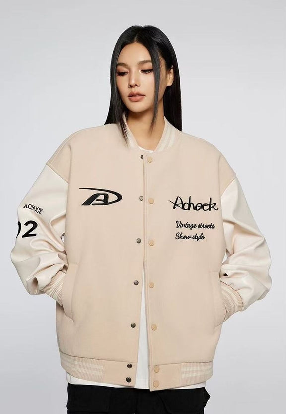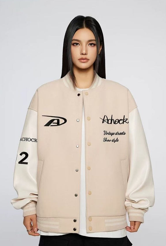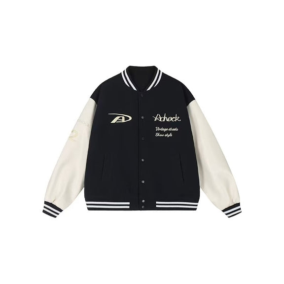 ACHOCK Basic Logo Embroidered Baseball Jacket