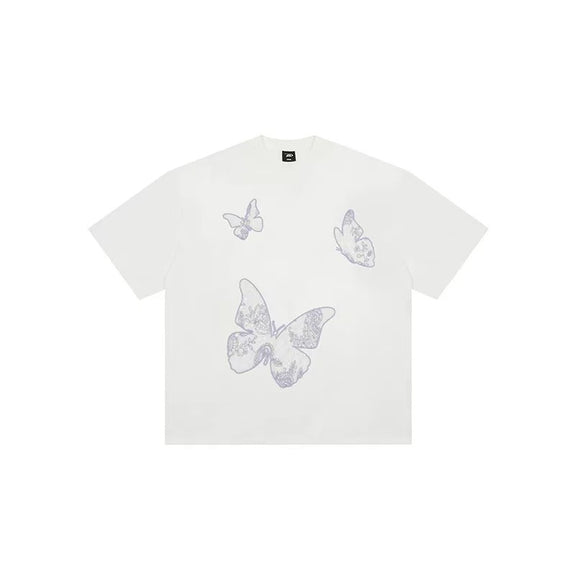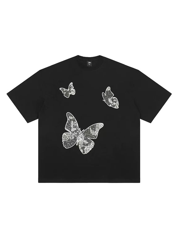 ACHOCK Butterfly Embroidered Crew Neck Short Sleeves Tee