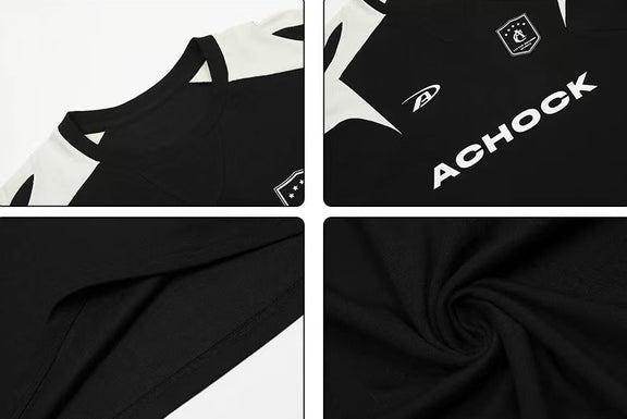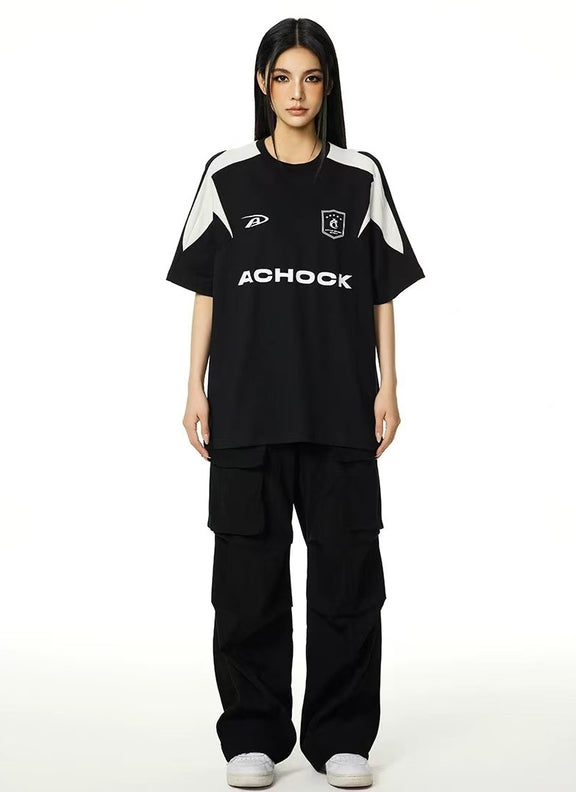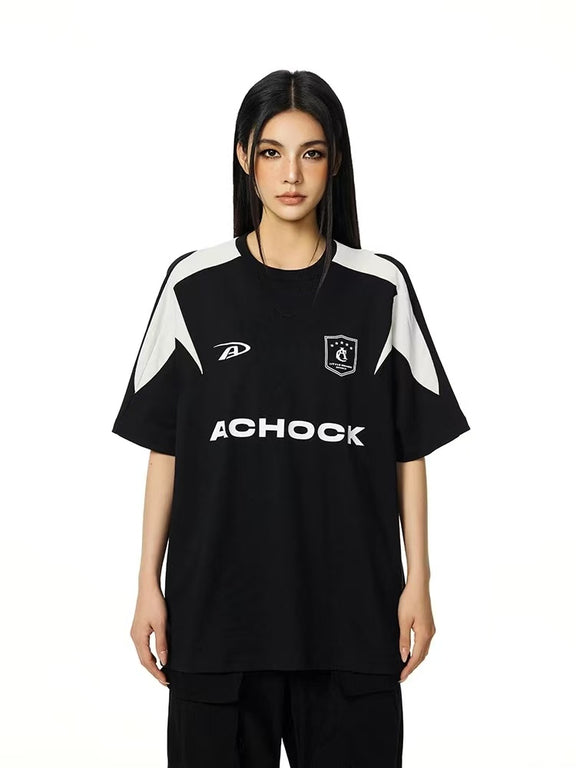 ACHOCK Casual Basic Patchwork Contrasting Color T-shirt