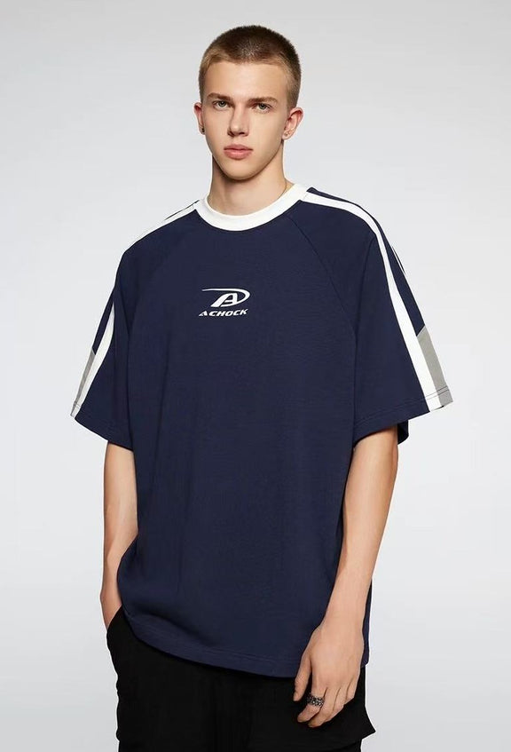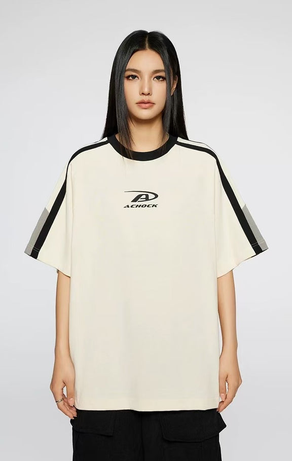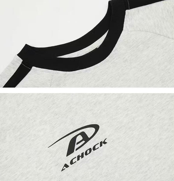 ACHOCK Contrast Color Patchwork Printed T-shirt
