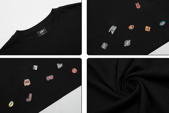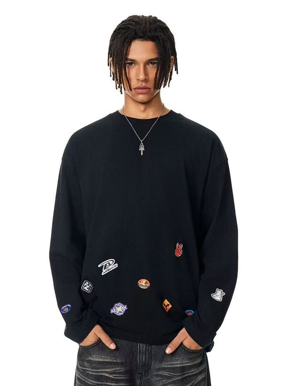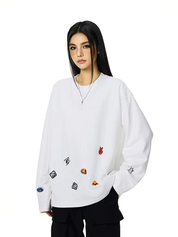 ACHOCK Creative Cartoon Sticker Long-sleeved T-shirt