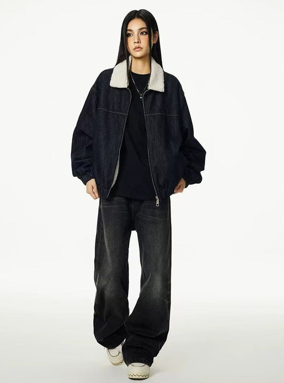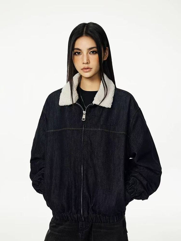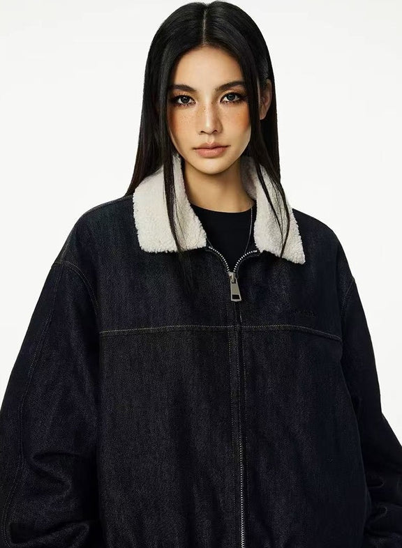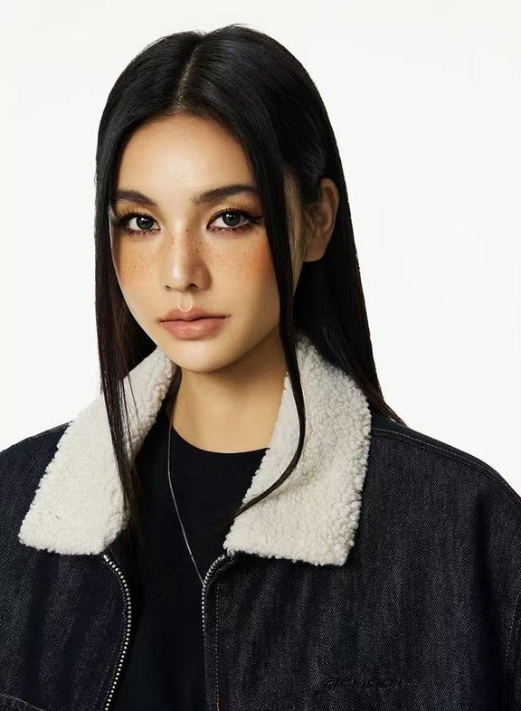 ACHOCK Denim Faux Sherpa Lapel Warm Thicken Jacket