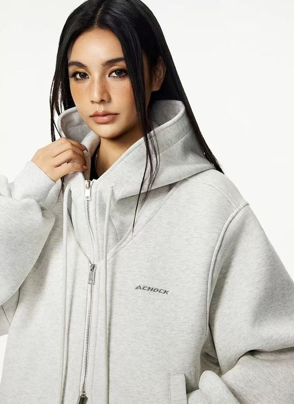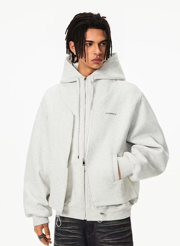 ACHOCK Double Zipper Air Layer Cardigan Hooded Jacket