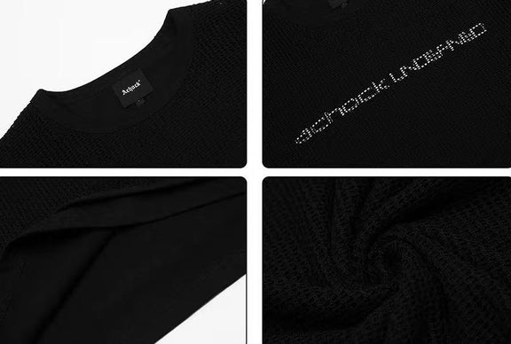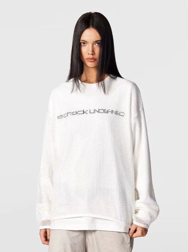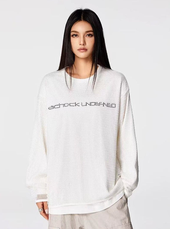 ACHOCK Fake Two-piece Heavy-duty Hollow Printed Long-sleeved T-shirt