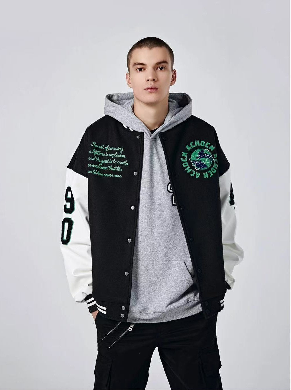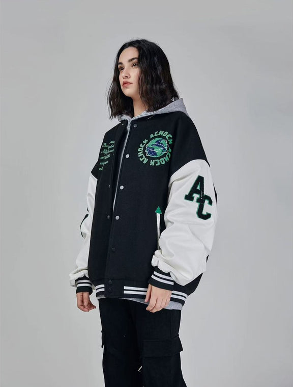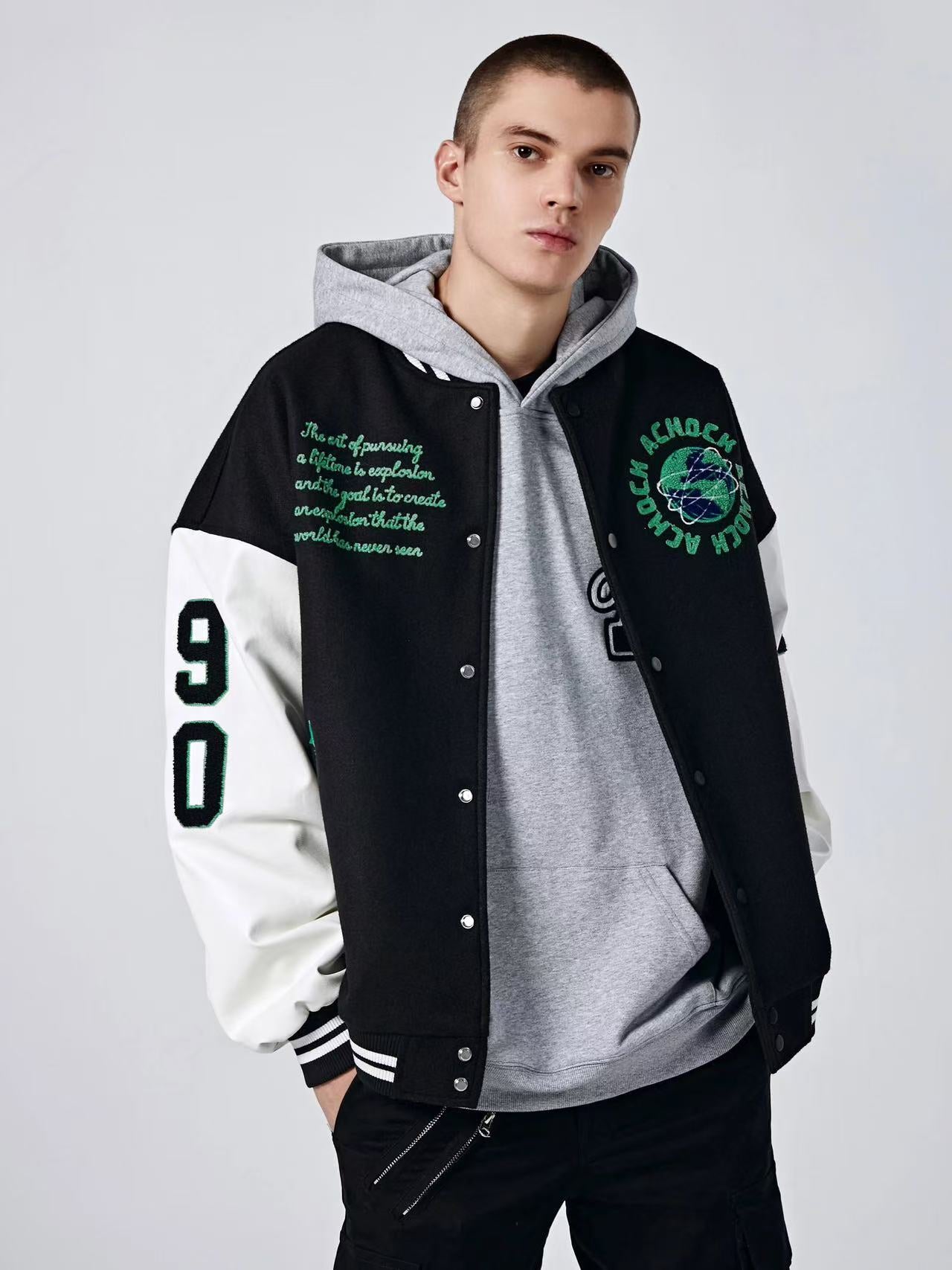 ACHOCK Green Earth Embroidered Baseball Jacket