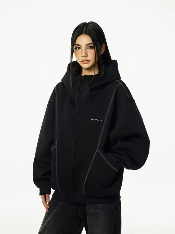 ACHOCK Heavy Air Layer Cardigan Zipper Sweatshirt