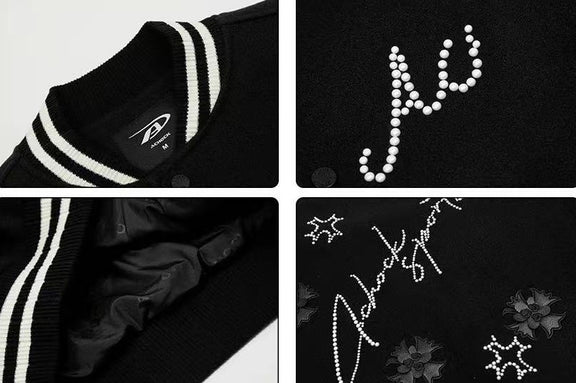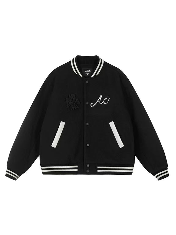ACHOCK Heavy Embroidered Pearl Design Baseball Jacket