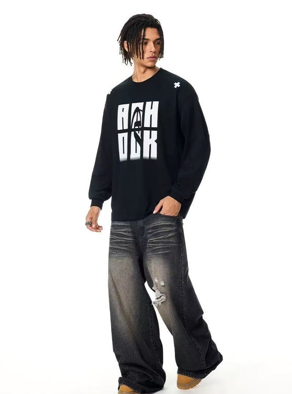 ACHOCK Heavy Letter Print Long-sleeve T-shirt