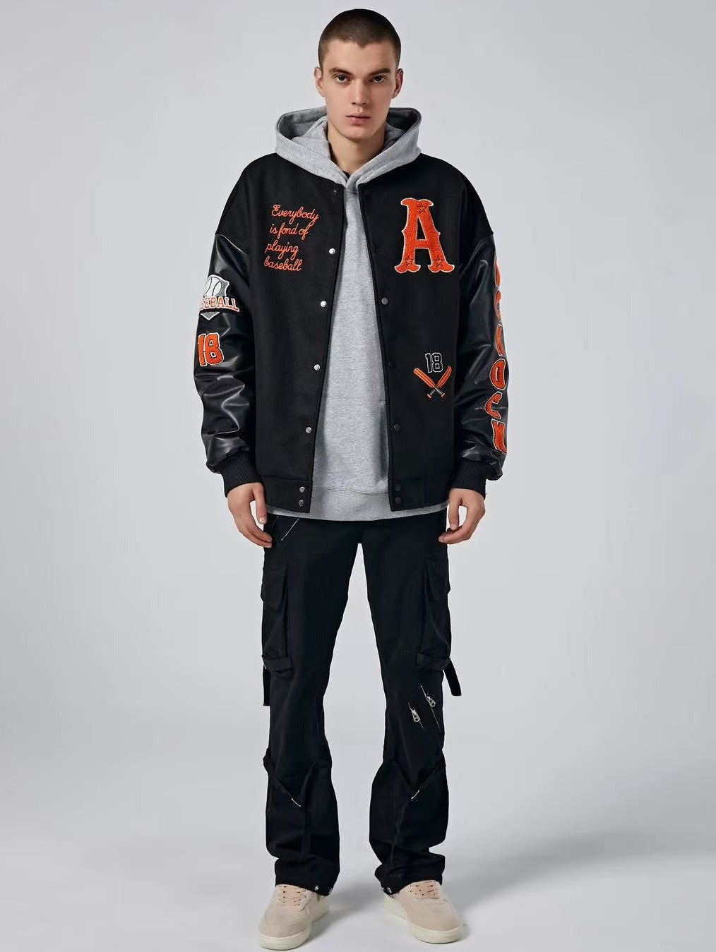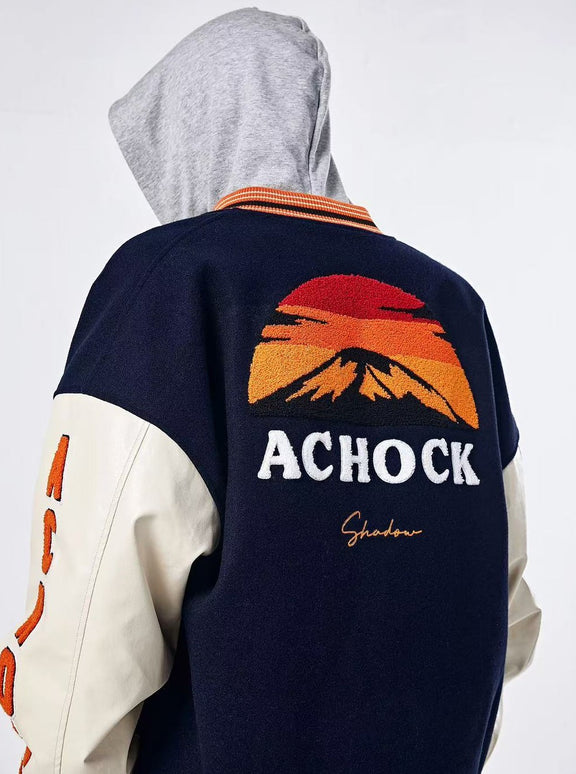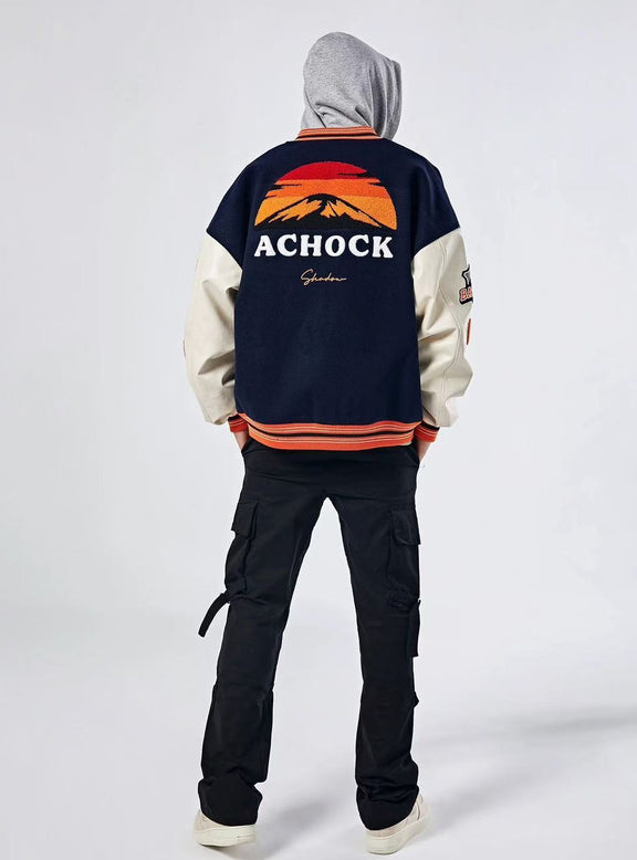 ACHOCK High Street Two-tone Baseball Embroidered Varsity Jacket