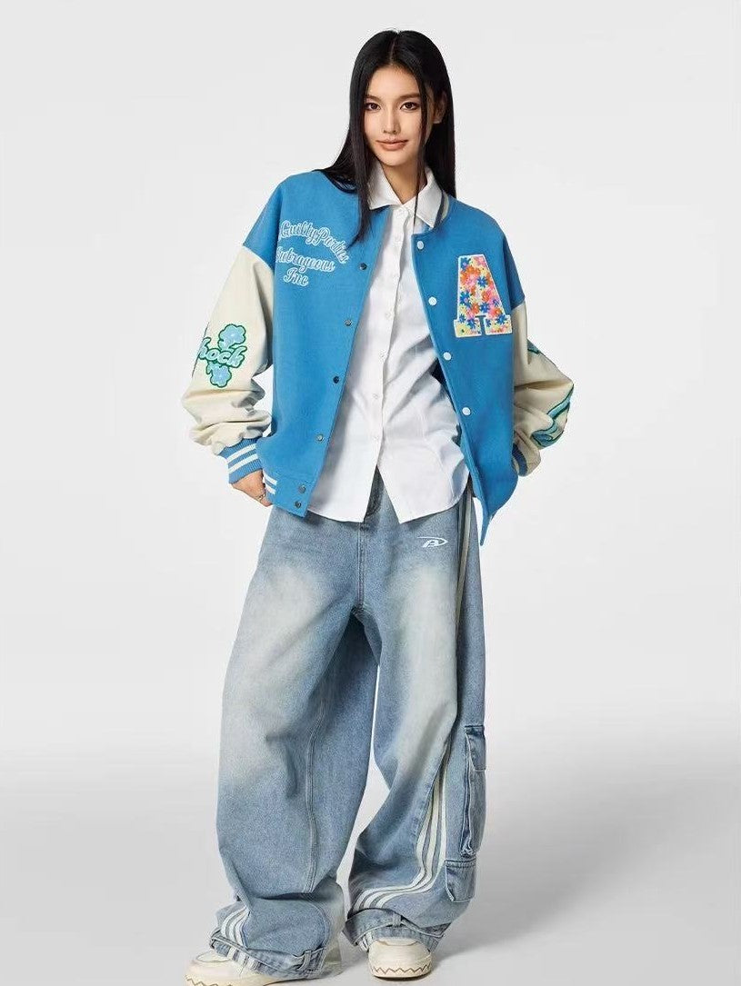 ACHOCK Hollow Floral Embroidered Baseball Jacket