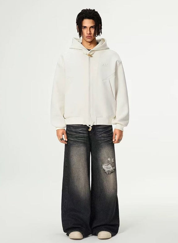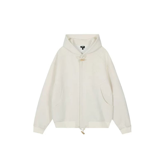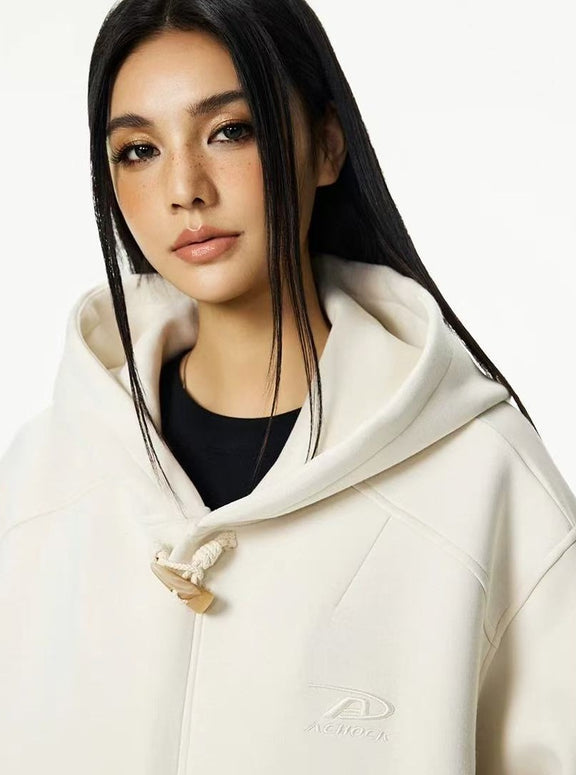 ACHOCK Horn Button Air Layer Cardigan Hooded Sweatshirt