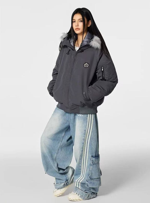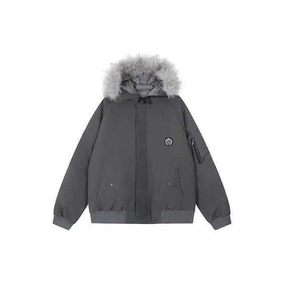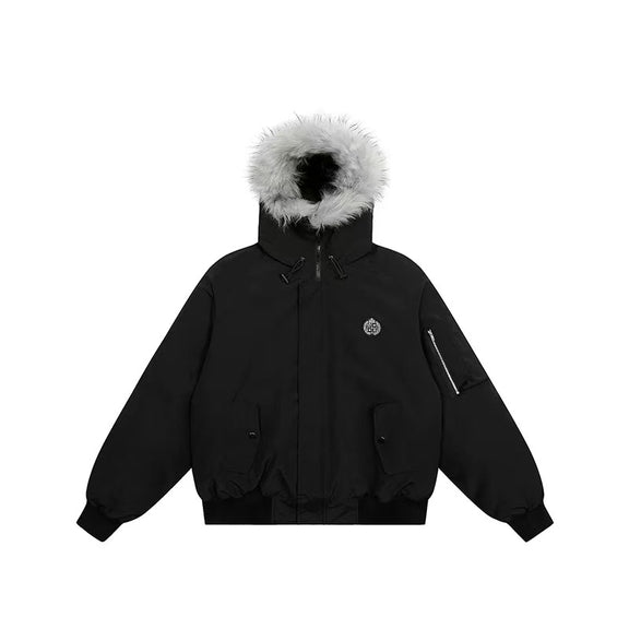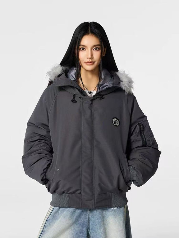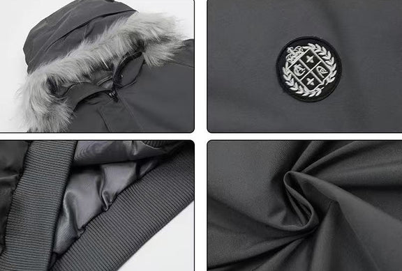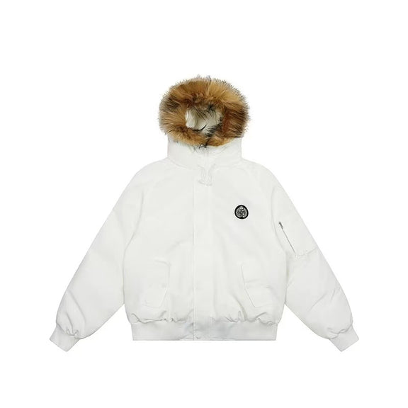ACHOCK Logo Design Fur Collar Hooded Cotton Coat