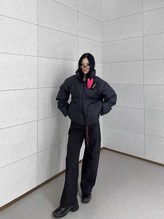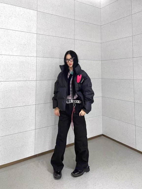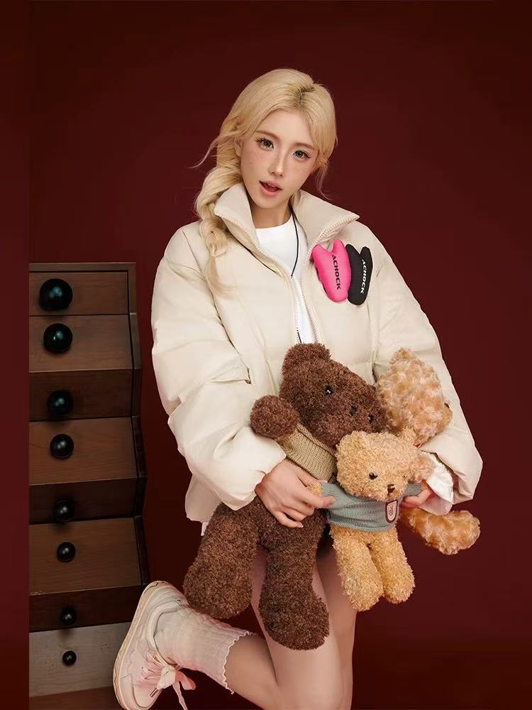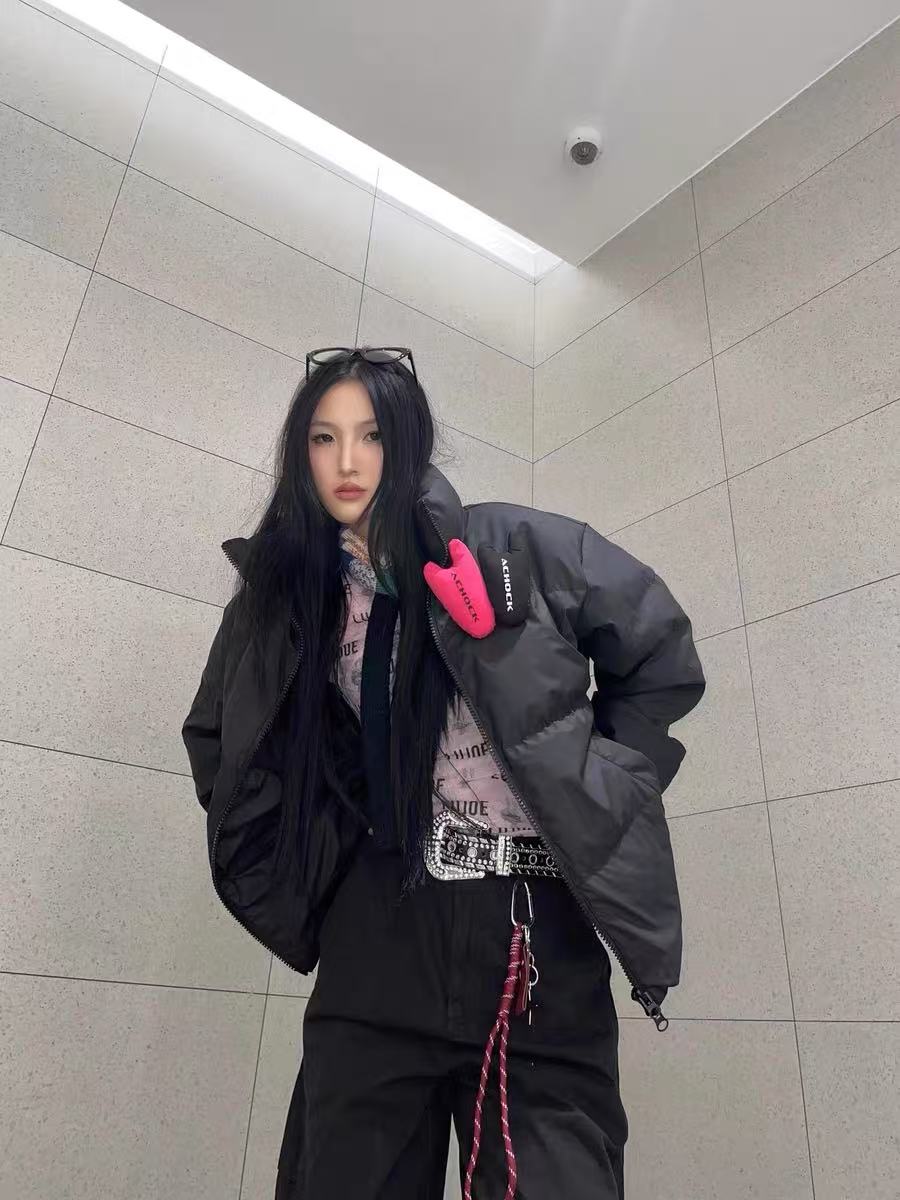 ACHOCK PU Leather Velcro Down Jacket