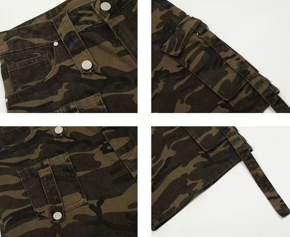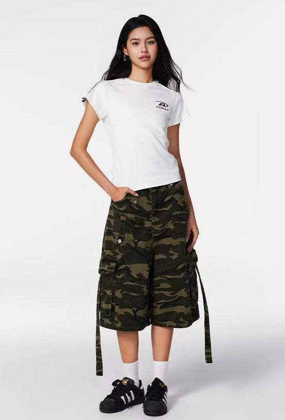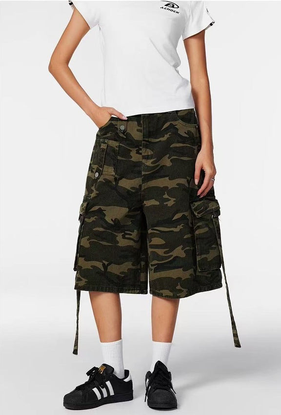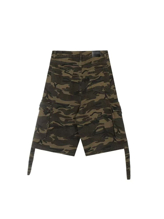 ACHOCK Retro Big Pocket Camouflage Baggy Shorts
