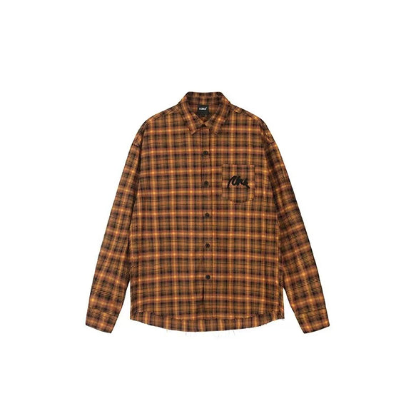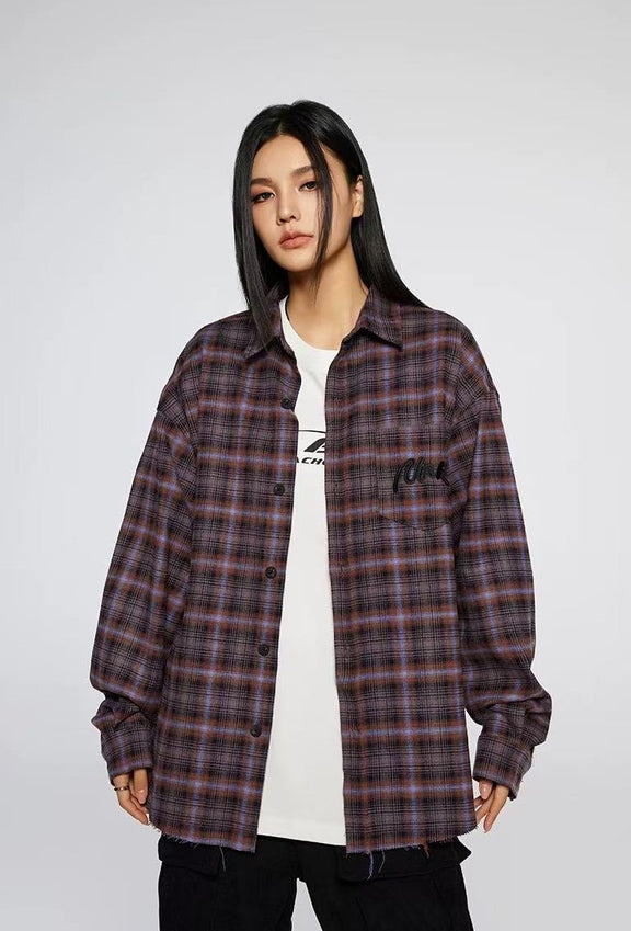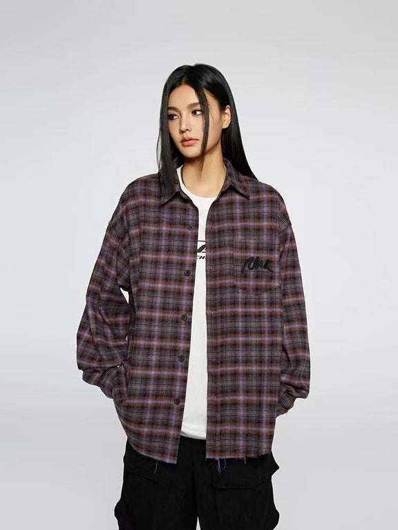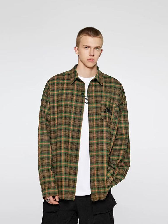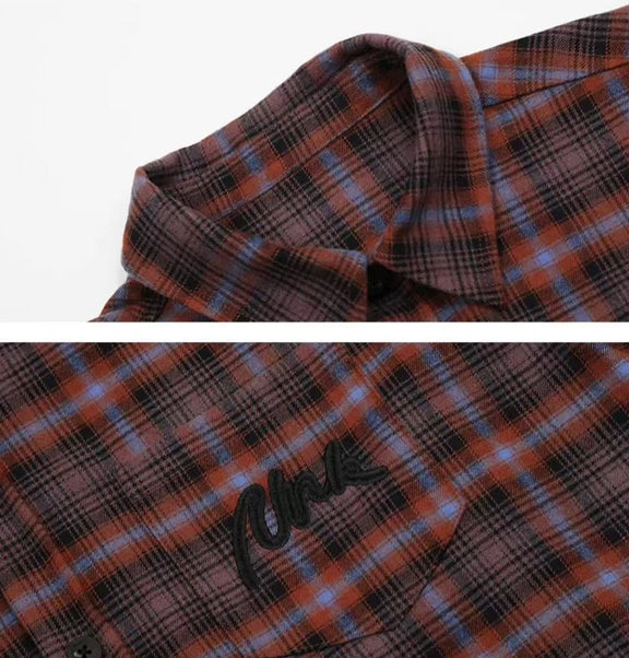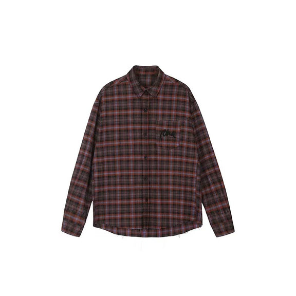 ACHOCK Retro Contrast Plaid Long-sleeve Shirt