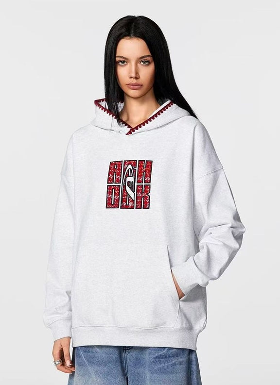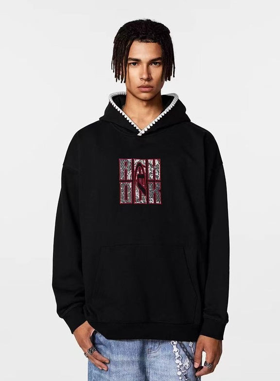 ACHOCK Retro Patch Embroidered Hoodie