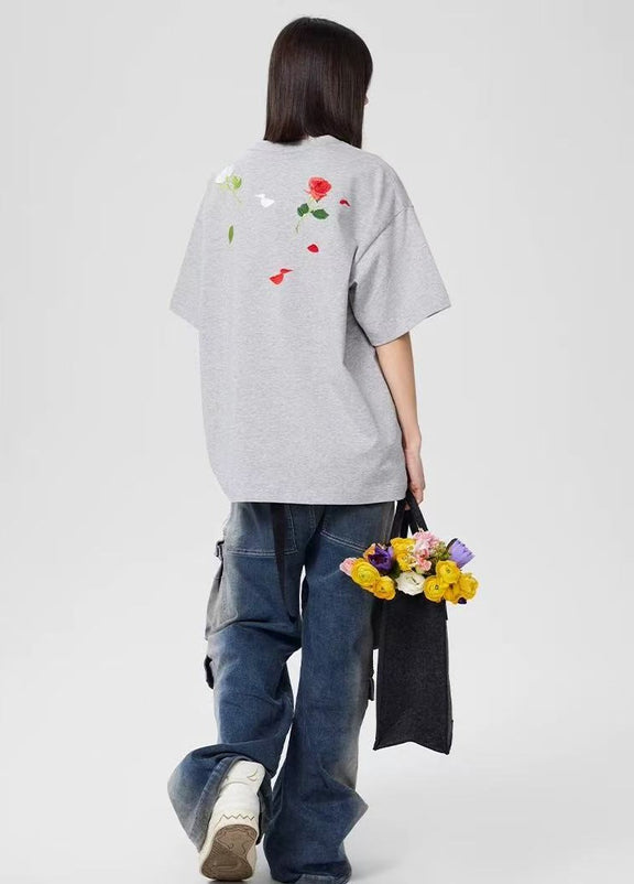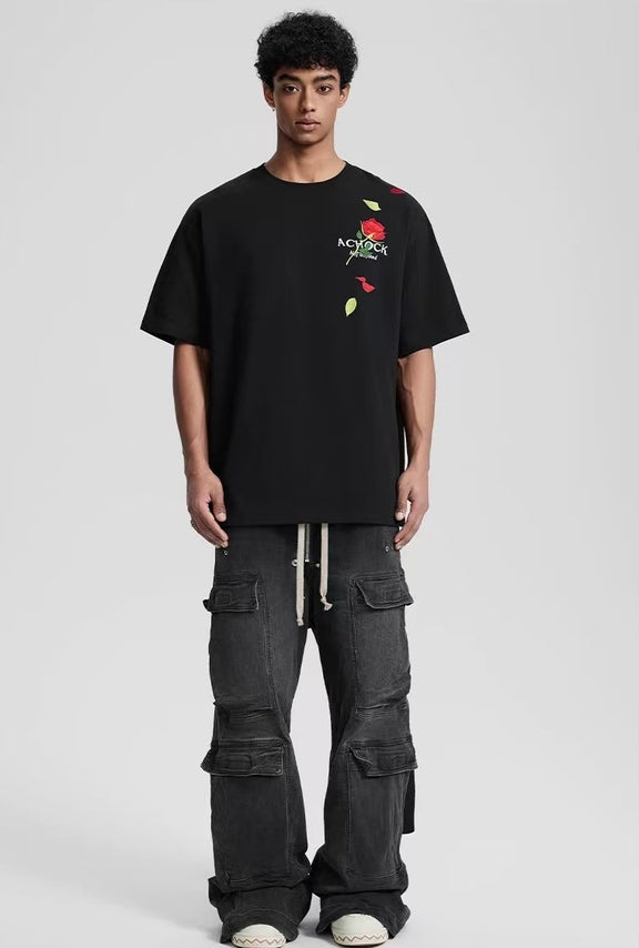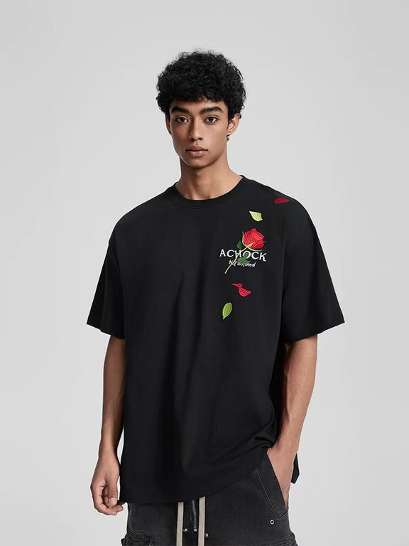 ACHOCK Rose Embroidered Short-sleeve T-shirt