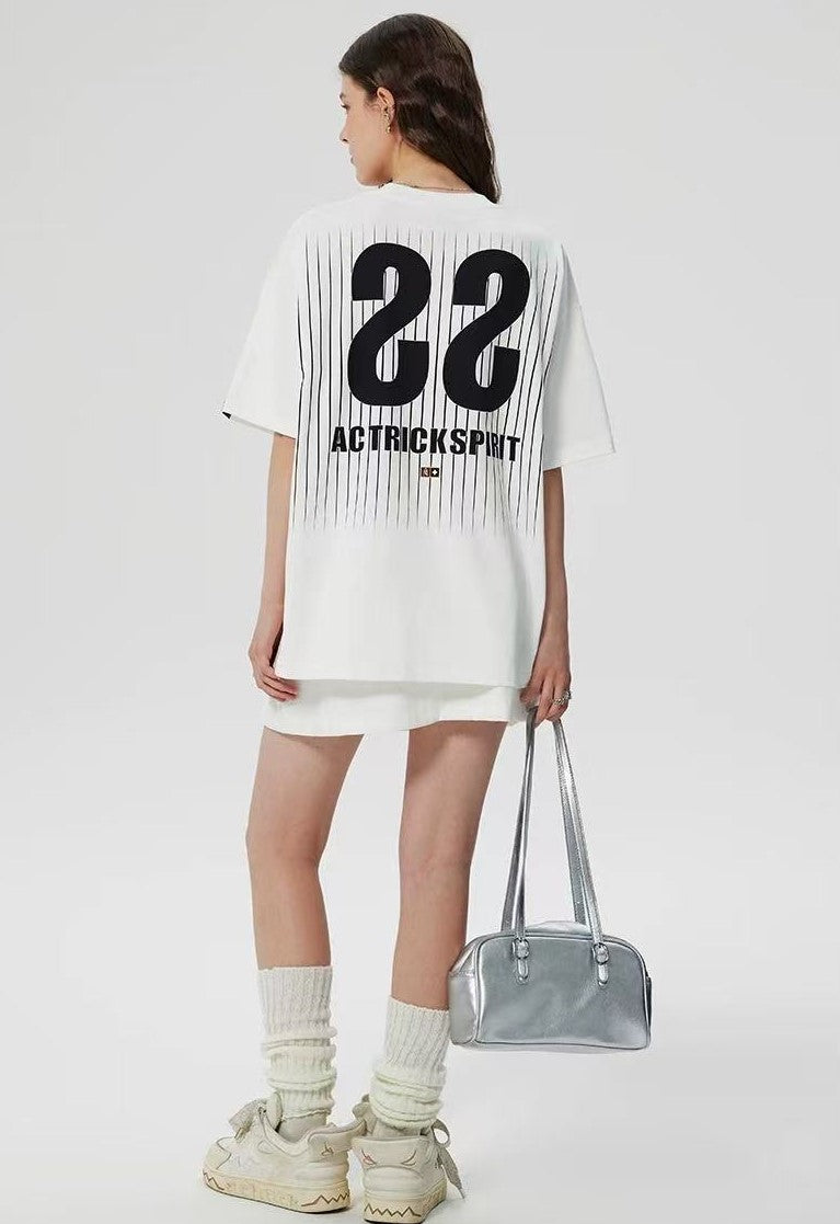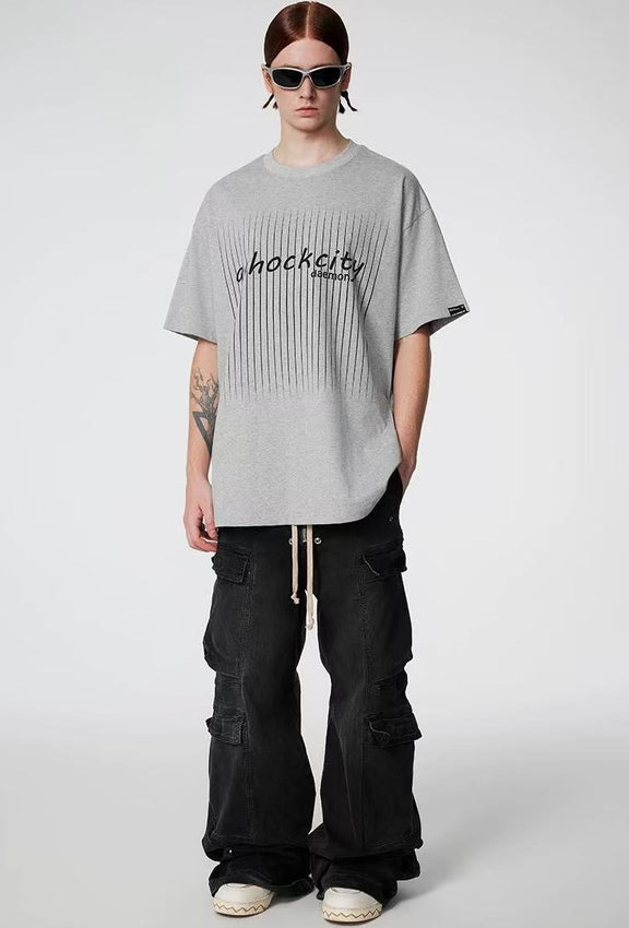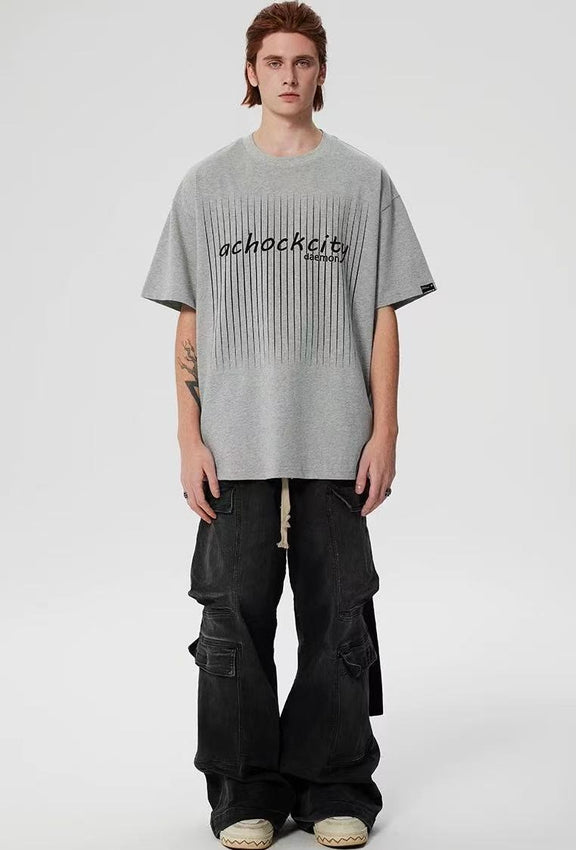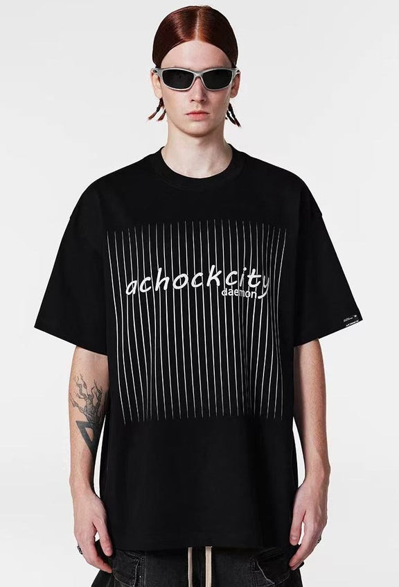 ACHOCK Screen Stripe Print Design Round Neck T-shirt