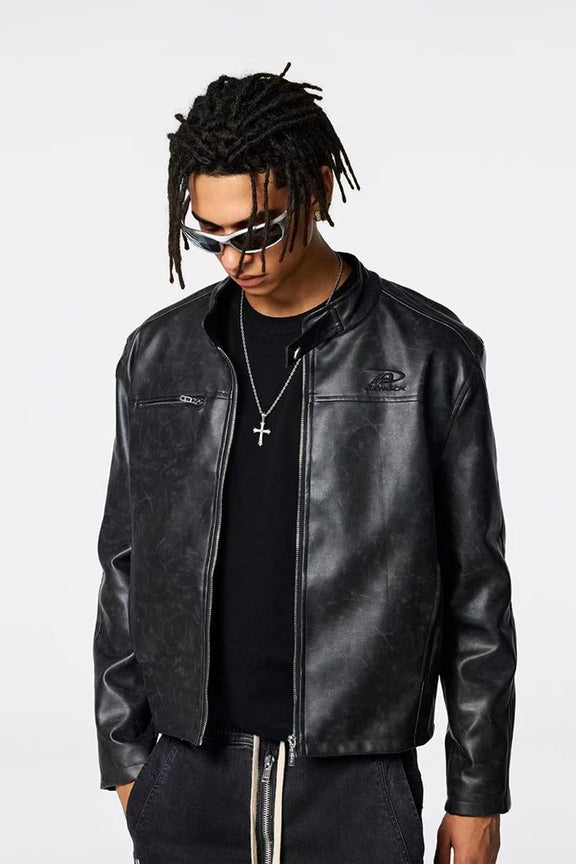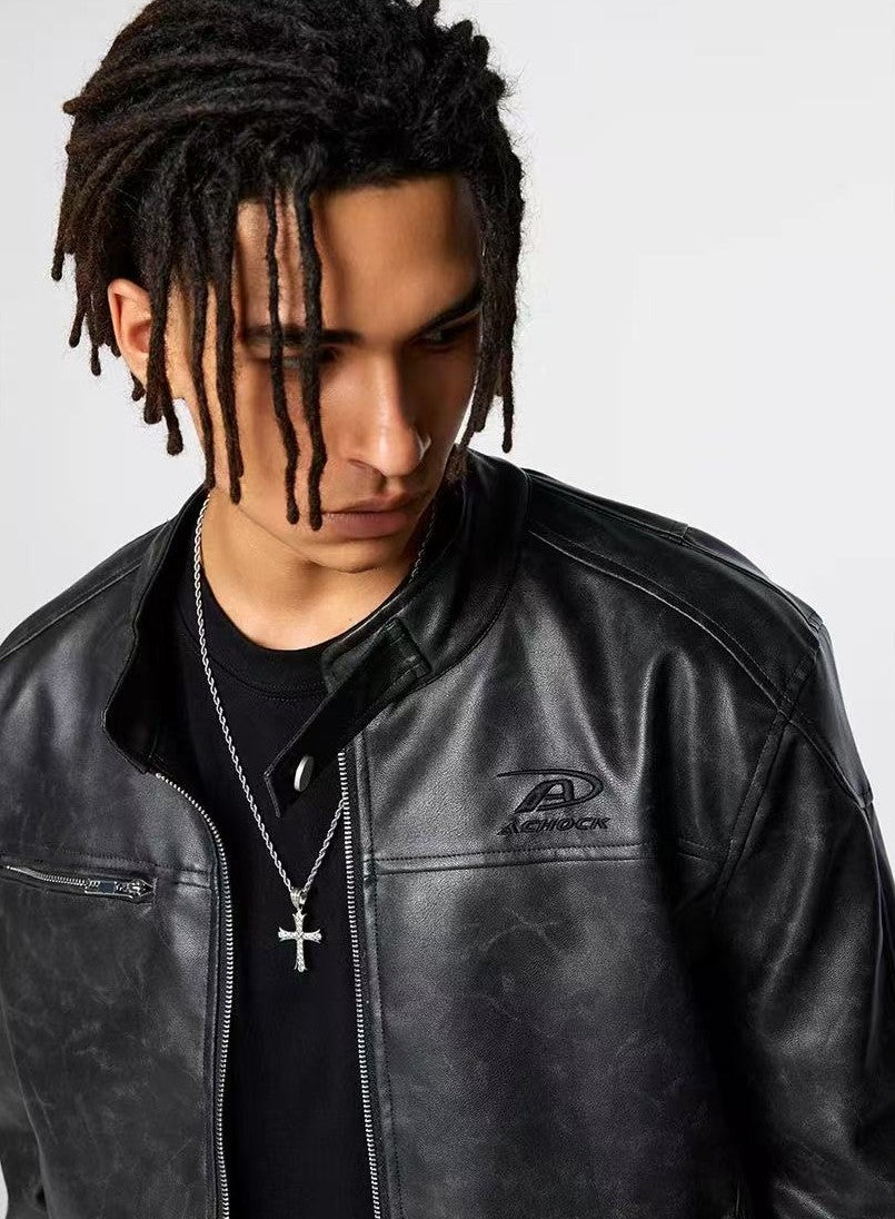 ACHOCK Stand Collar Slim Fit Leather Jacket