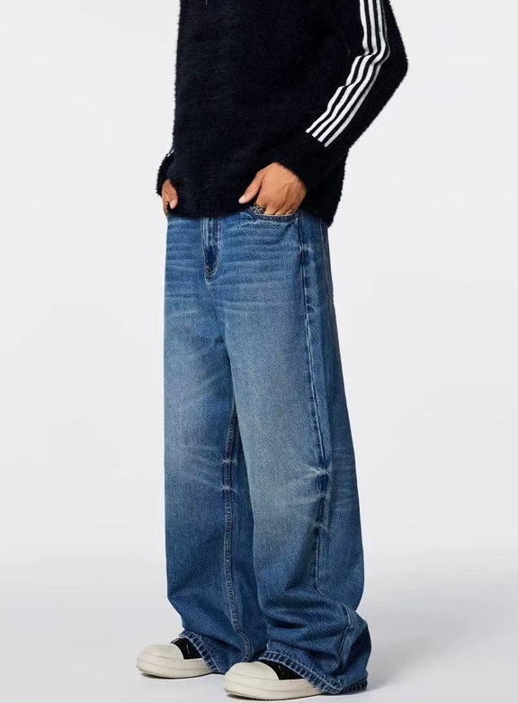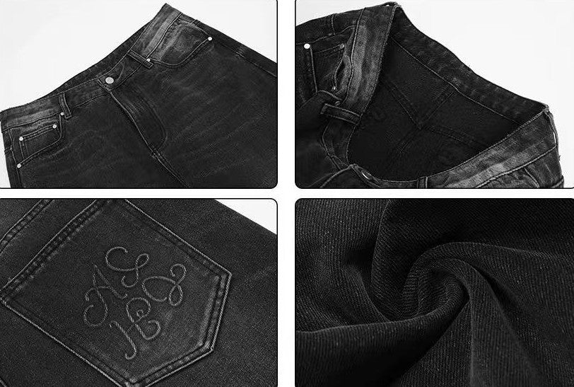 ACHOCK Vintage Washed Logo Stitching Jeans