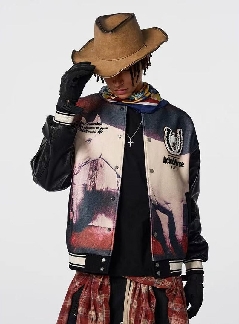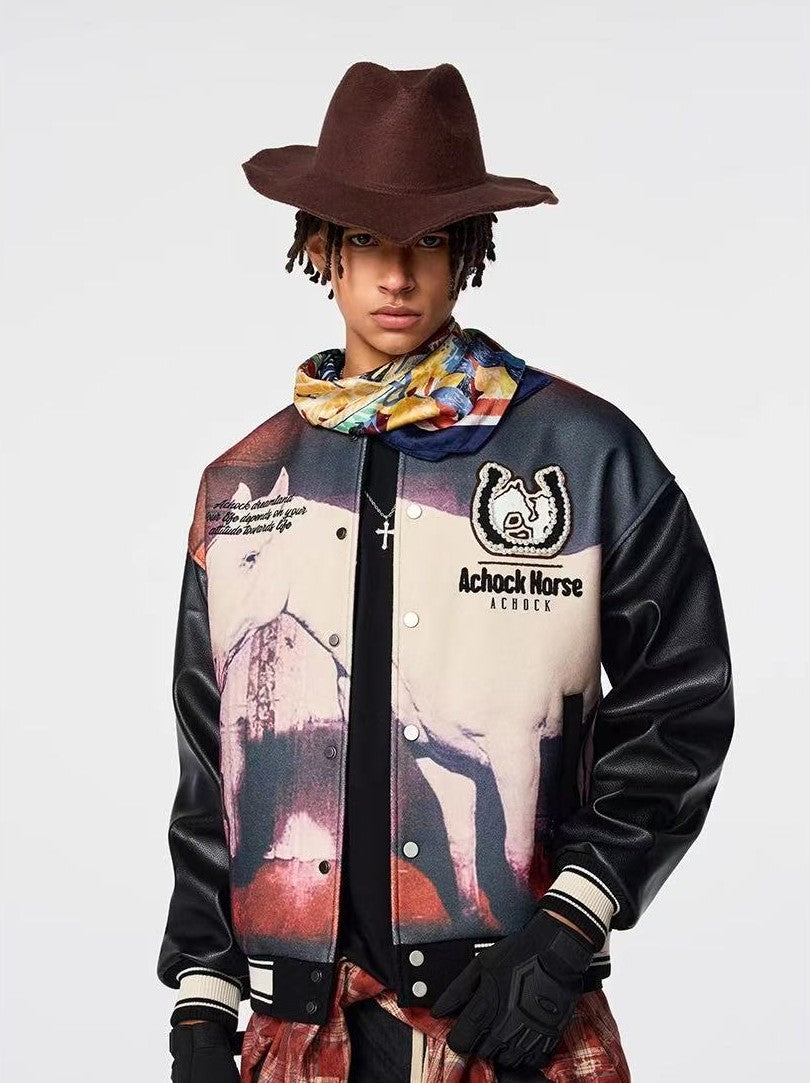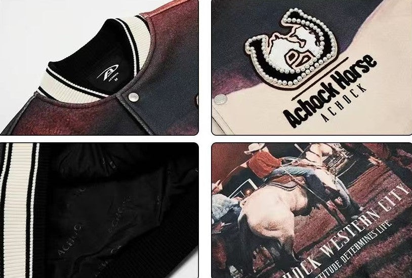 ACHOCK Vintage Western Cowboy Full Printing Hot Drill Jacket