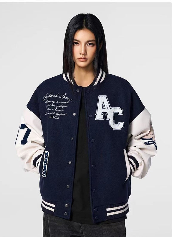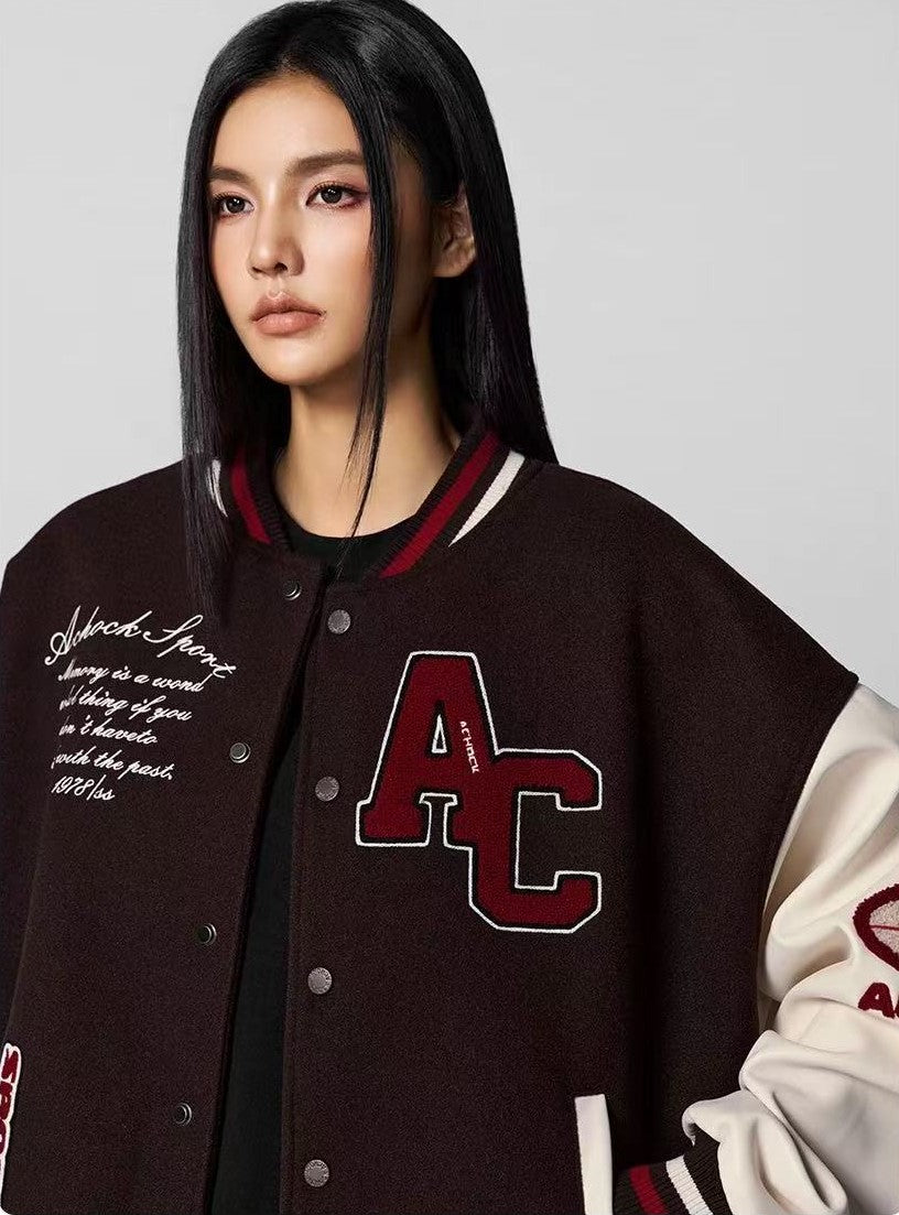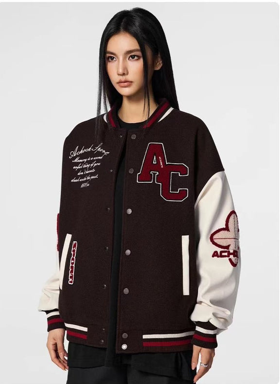 ACHOCK Waffle Logo Embroidered Baseball Jacket