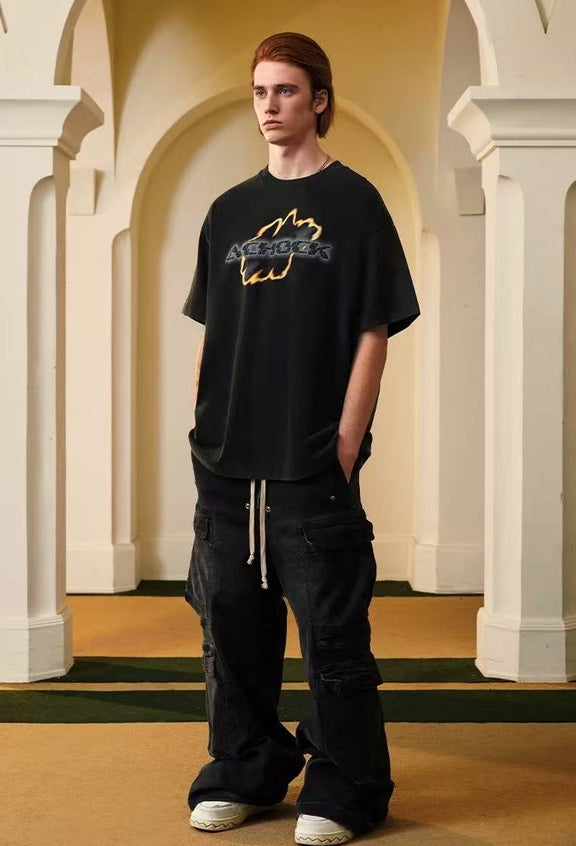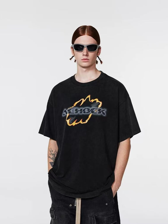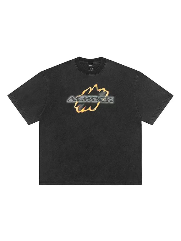 ACHOCK Washed Distressed Flame Print T-shirts
