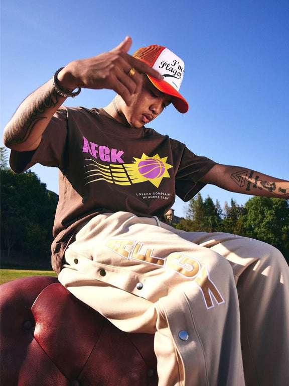 AFGK combines innovative style with streetwear authenticity through its collaborative crossover with Higher Brothers and DONCARE. The signature varsity jackets and circular logo allow you to represent this unique blend of music and fashion. A must-have for any streetwear enthusiast, AFGK empowers you to differentiate yourself with exceptional quality and distinctive aesthetics. Explore the future of urban fashion with AFGK.