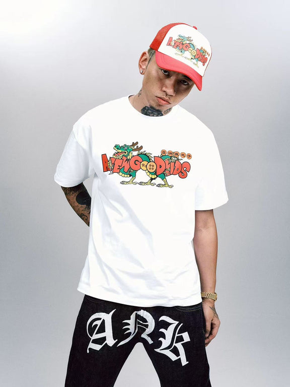 AFGK Cartoon Dragon Printed Short-sleeve T-shirt