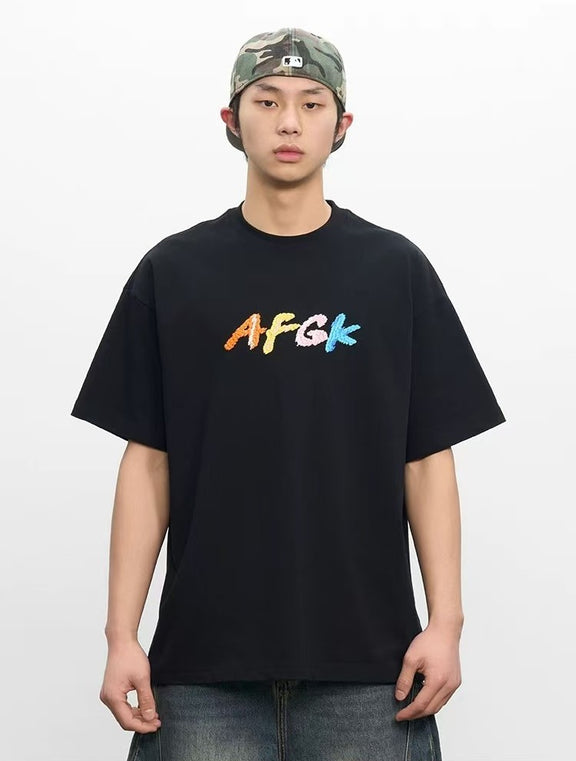 AFGK Colorful Logo Embroidered Short-sleeved T-shirt