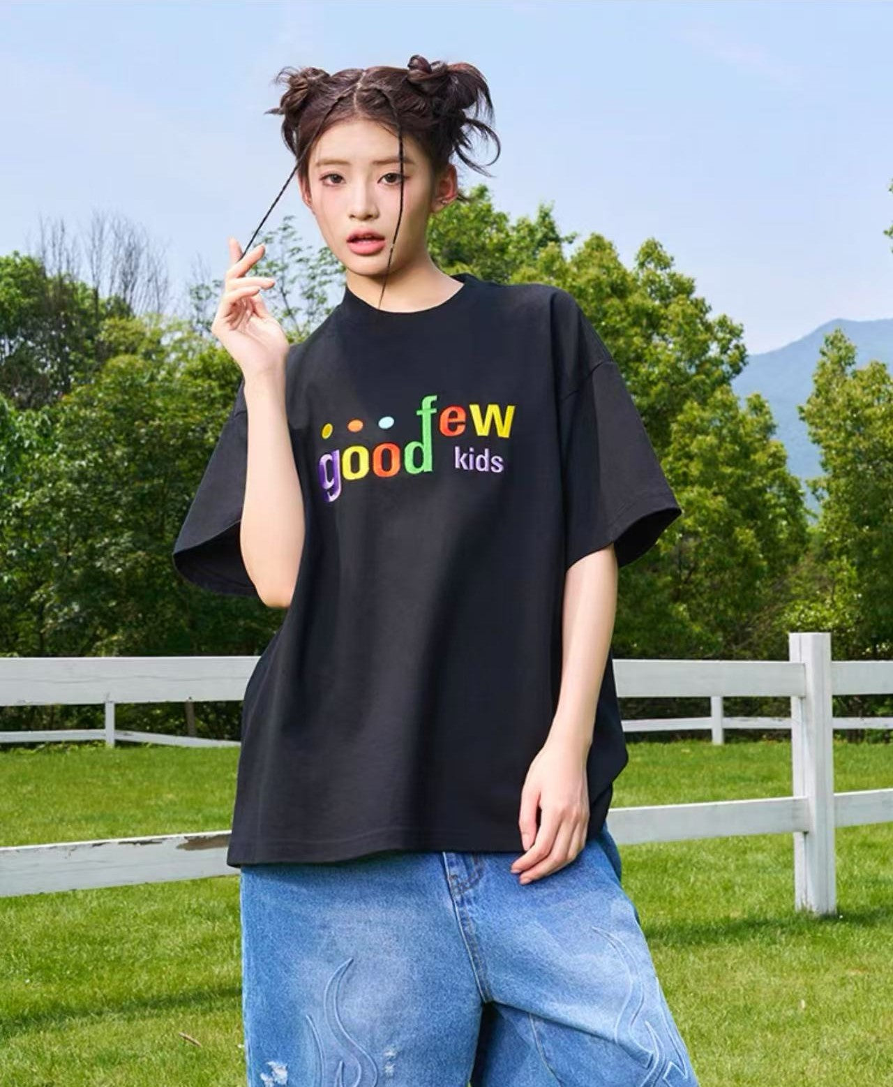 AFGK Contrast Color Printed Letter LOGO T-shirt