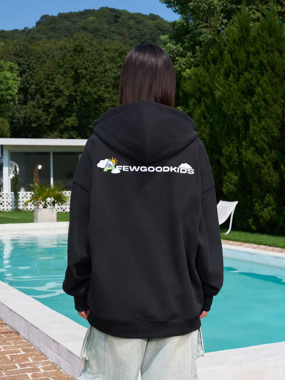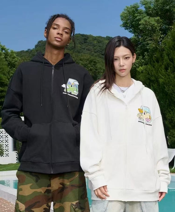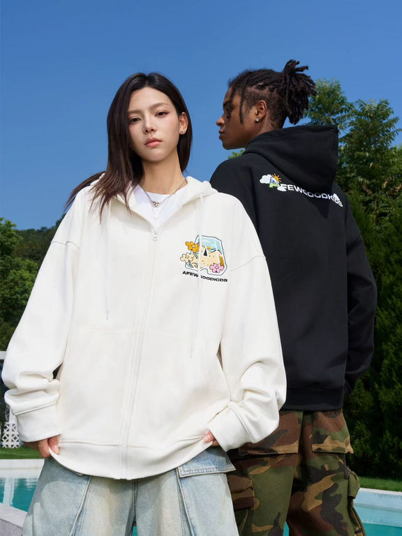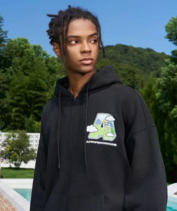 AFGK Hand-painted Lettering Embroidered Zipper Cardigan