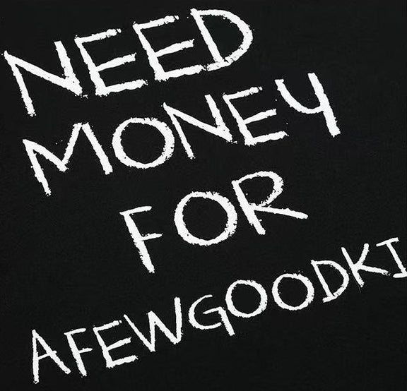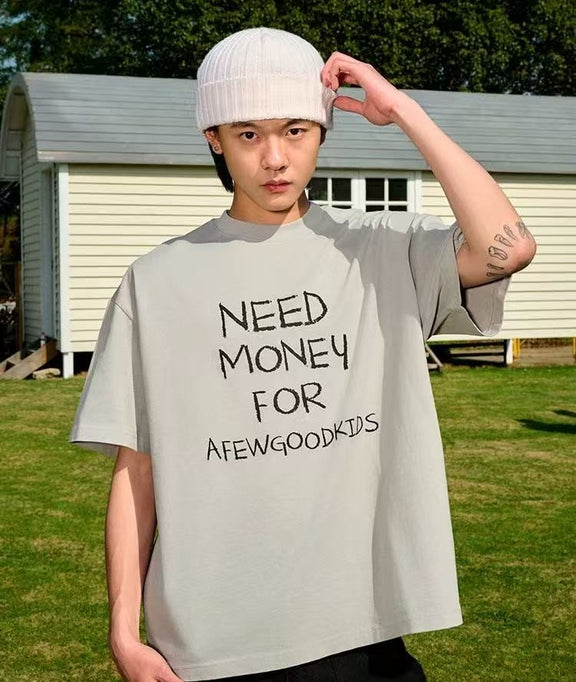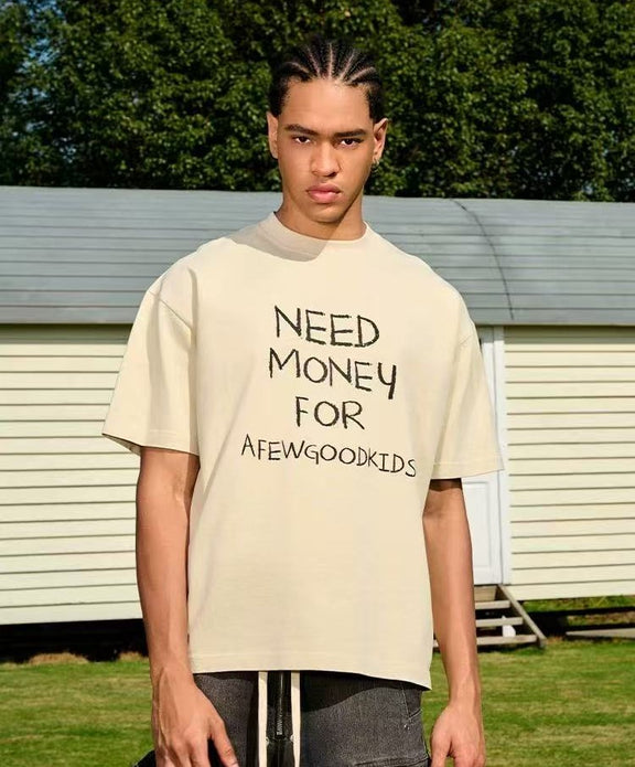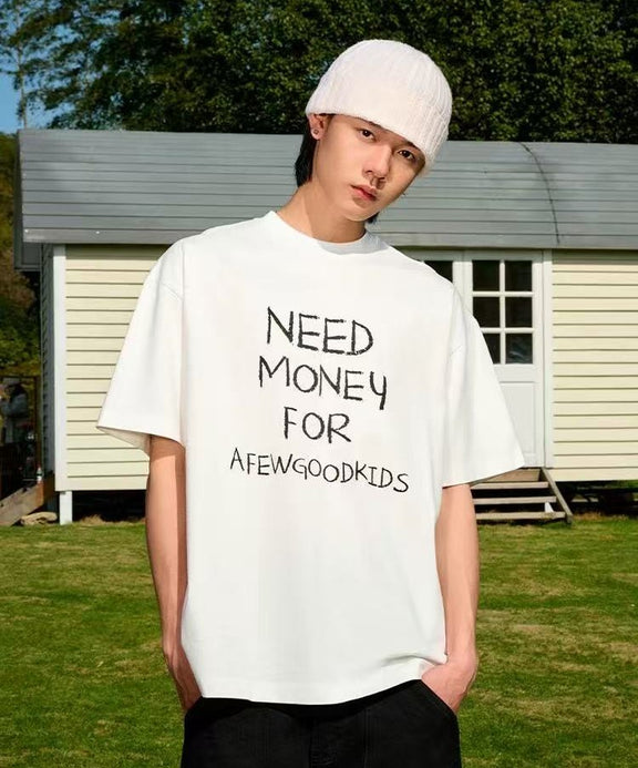 AFGK NEED MONEY Handwritten Slogan Short-sleeved T-shirt