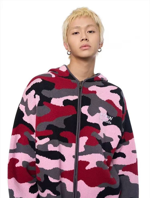AFGK Pink Camouflage Hooded Cardigan Sweater