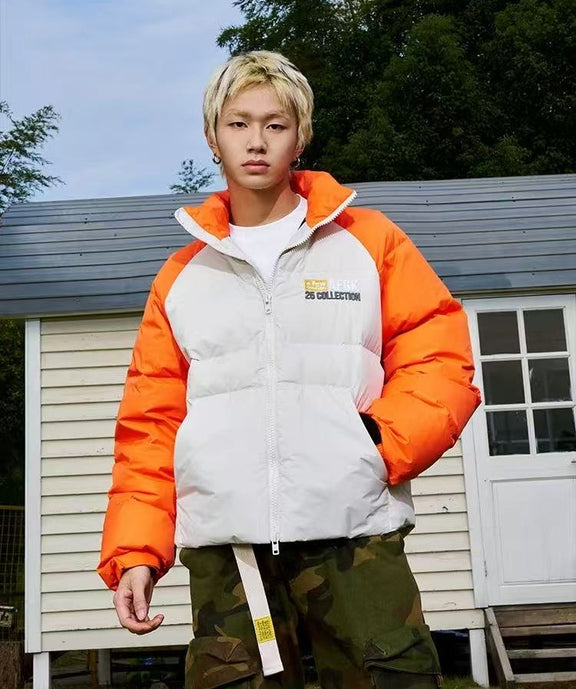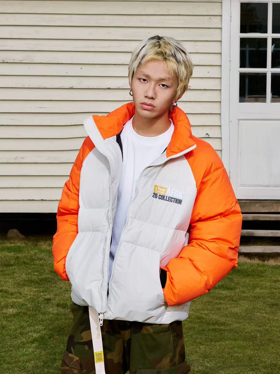 AFGK Raglan Sleeve Color Block Stand Collar Down Jacket