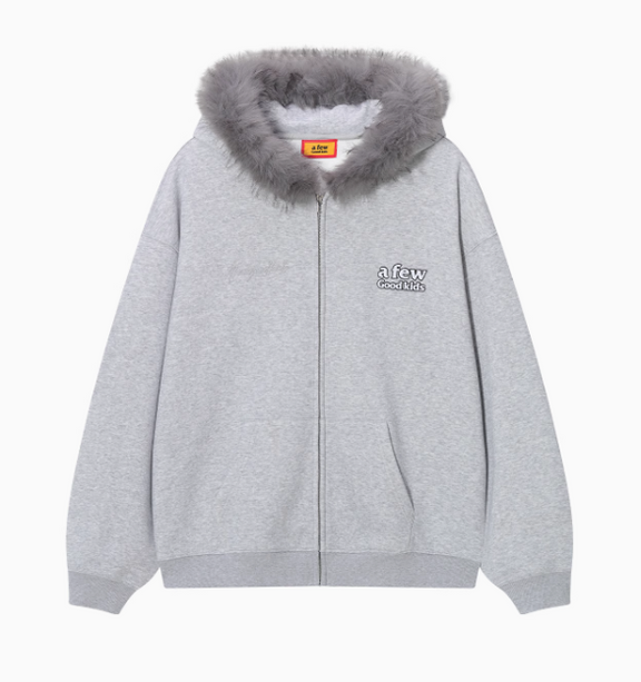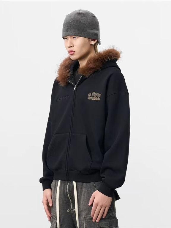 AFGK Retro Fur Collar Embroidered Hooded Cardigan Sweatshirt