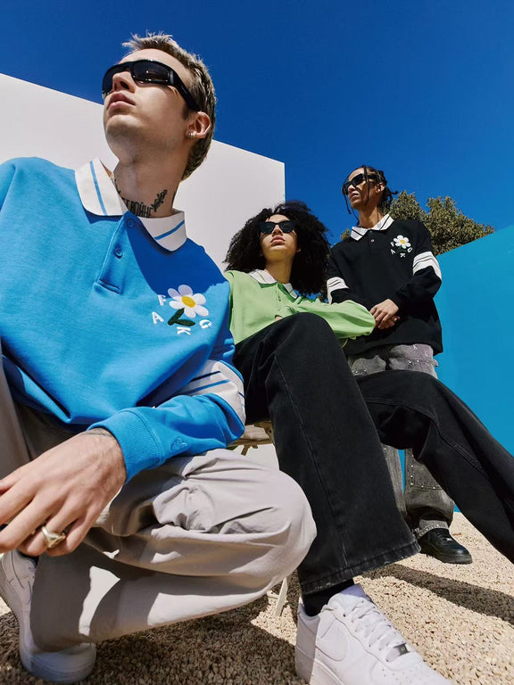 AFGK Small Flower Long-sleeve Polo T-shirt