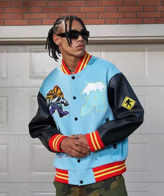 AFGK Snowy Terry Embroidered Contrasting Color Baseball Jacket