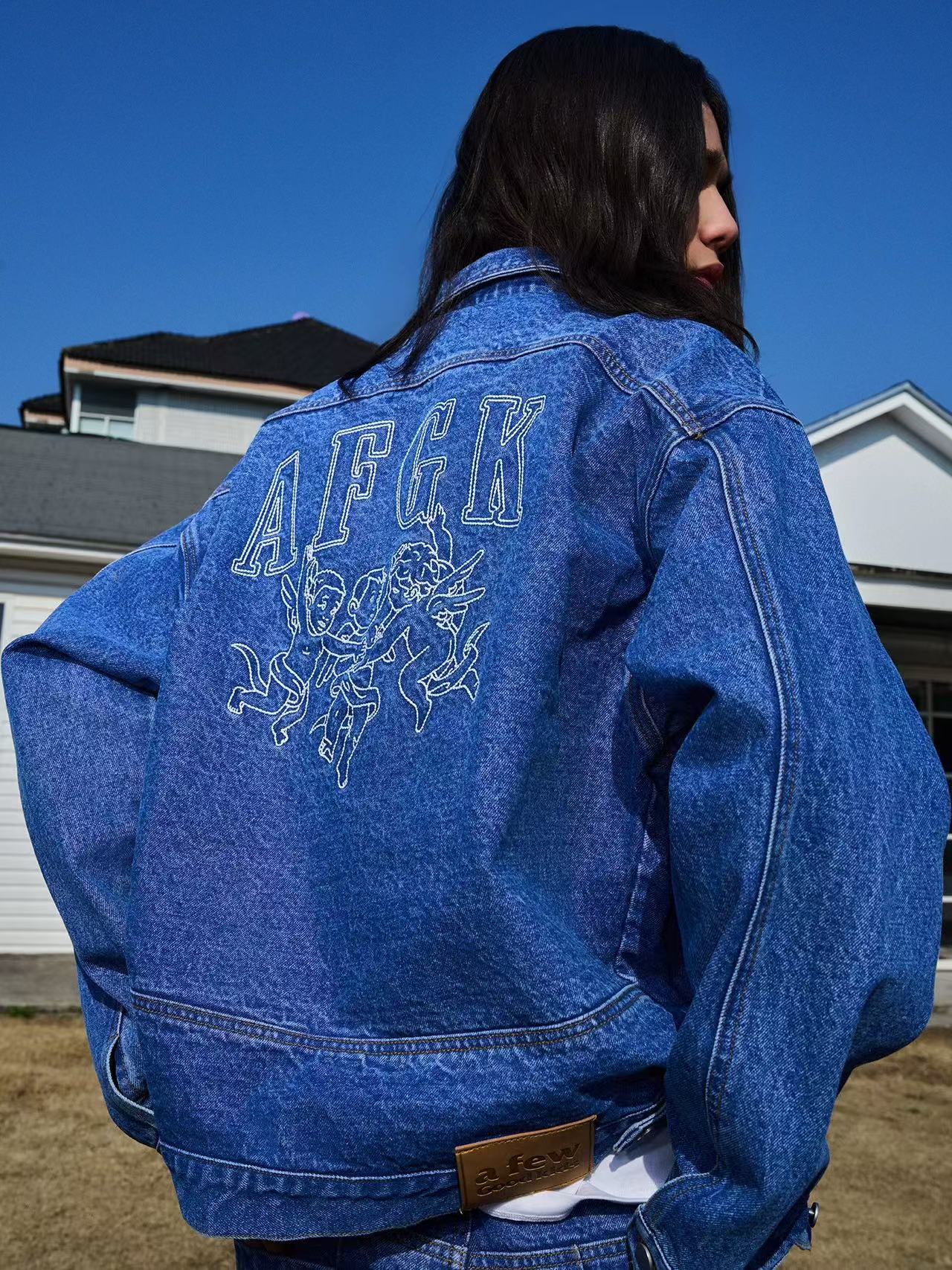 AFGK Three Angels Topstitch Embroidered Denim Jacket