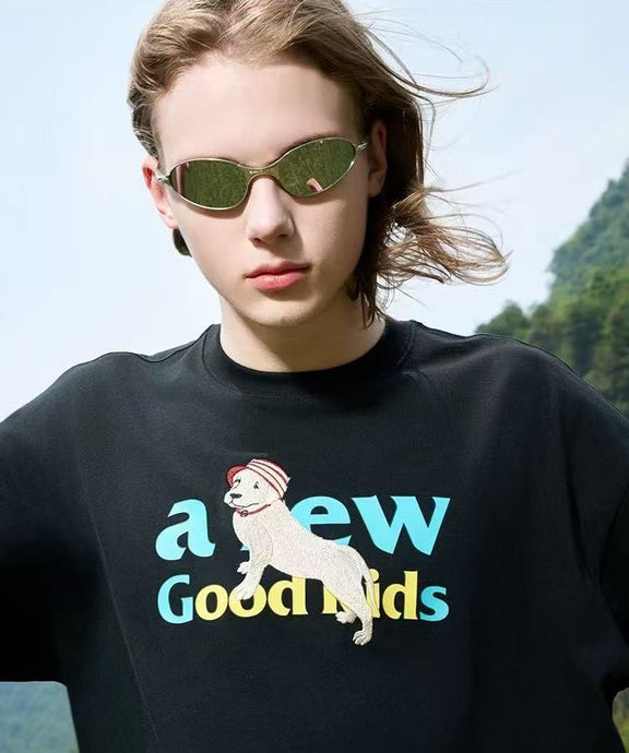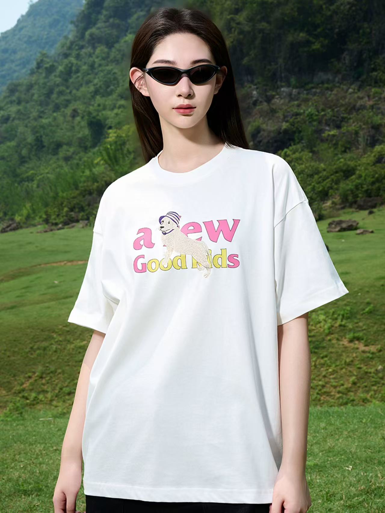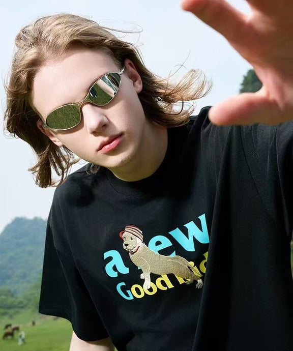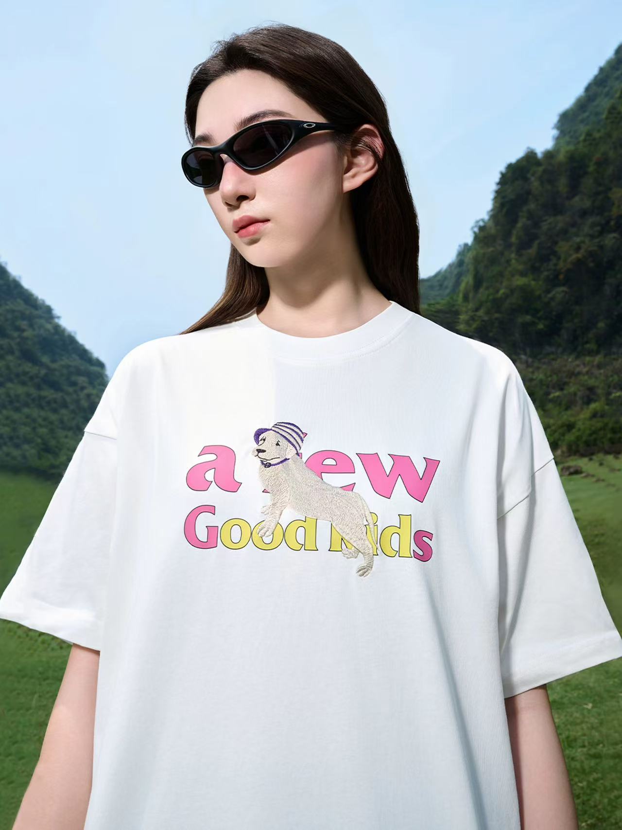 AFGK Vacation Puppy Embroidered Short Sleeve T-Shirt
