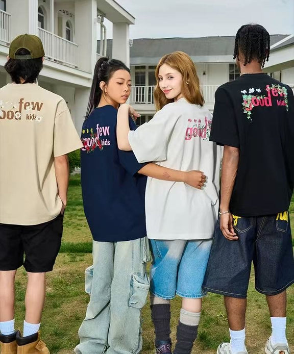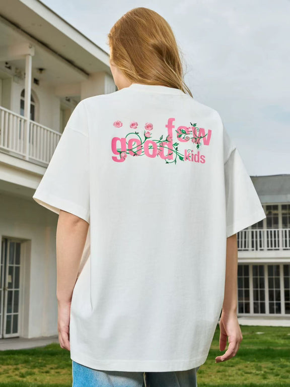AFGK "Vine Garden" Rose Embroidered Short-sleeved T-shirt