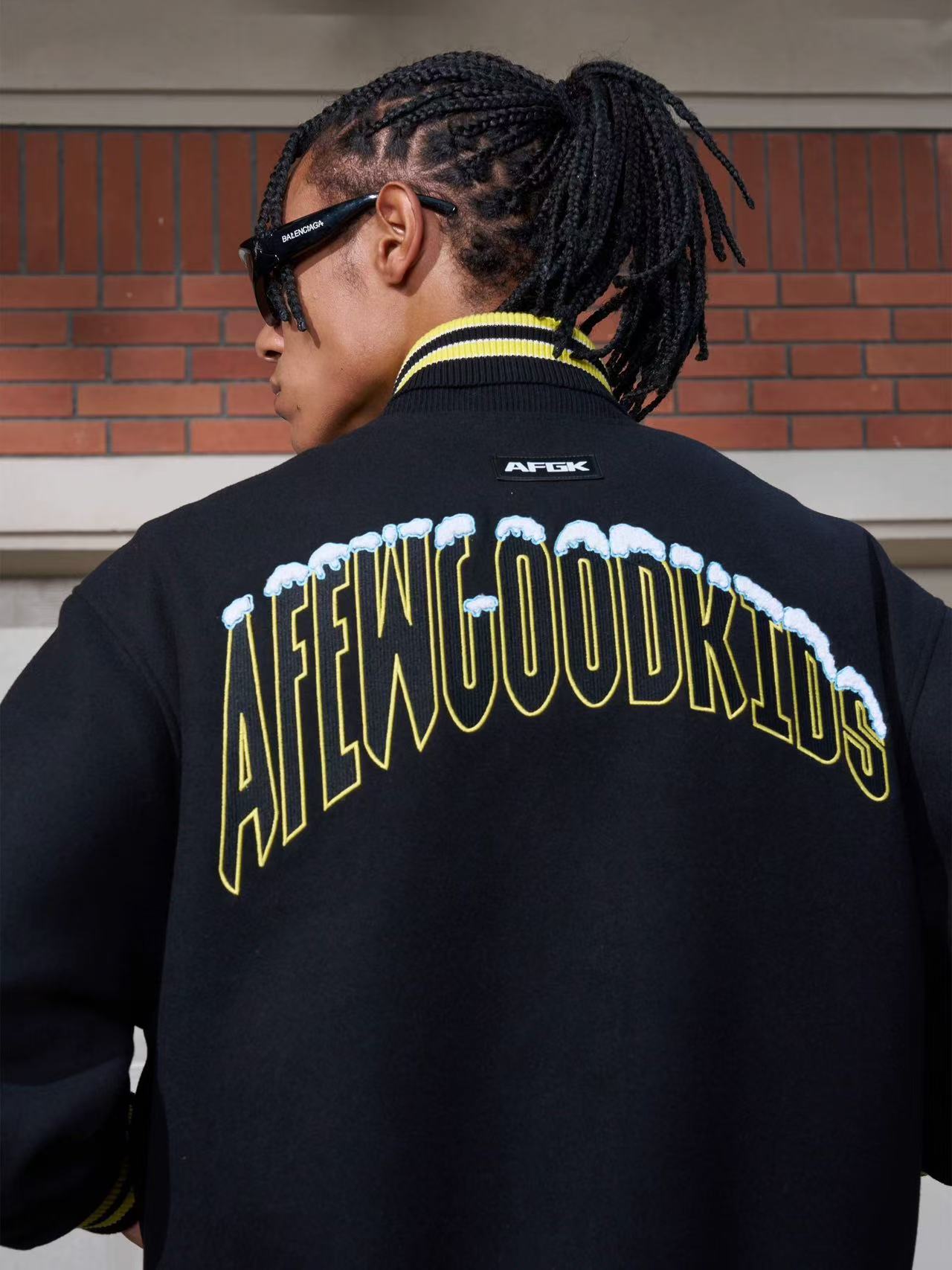 AFGK combines innovative style with streetwear authenticity through its collaborative crossover with Higher Brothers and DONCARE. The signature varsity jackets and circular logo allow you to represent this unique blend of music and fashion. A must-have for any streetwear enthusiast, AFGK empowers you to differentiate yourself with exceptional quality and distinctive aesthetics. Explore the future of urban fashion with AFGK.