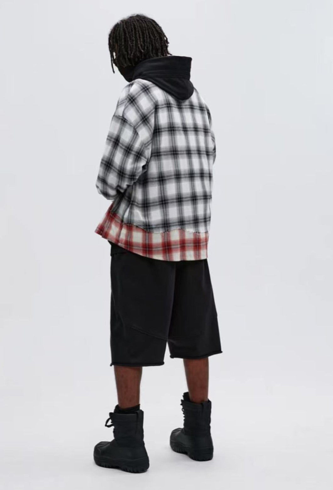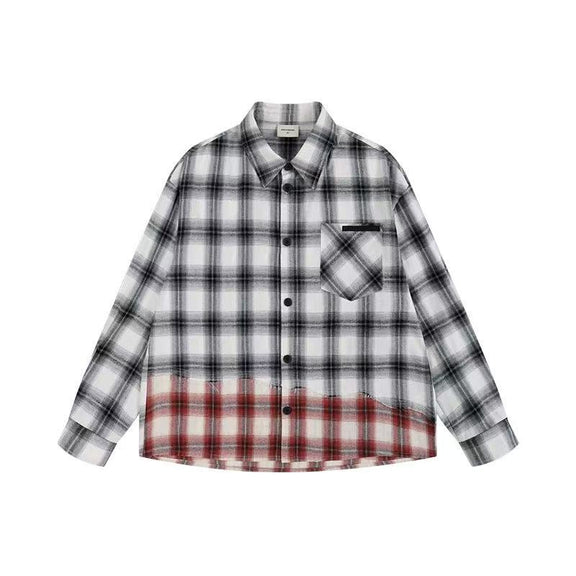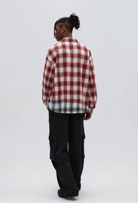 ATRY Plaid Paneled Raw Edge Long-sleeved Shirt