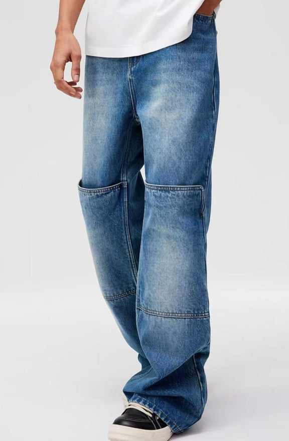 ATRY Retro Patch Washed Bootcut Denim Trousers