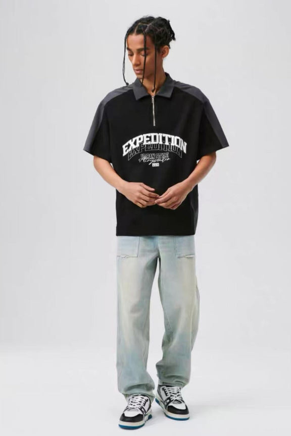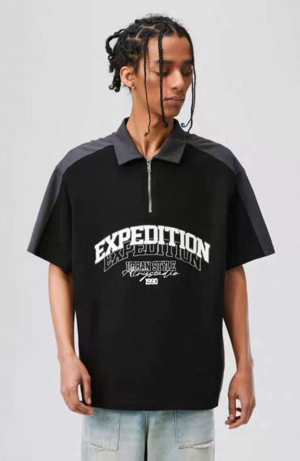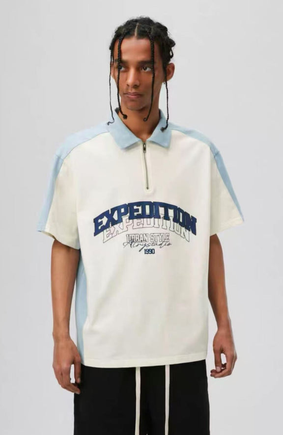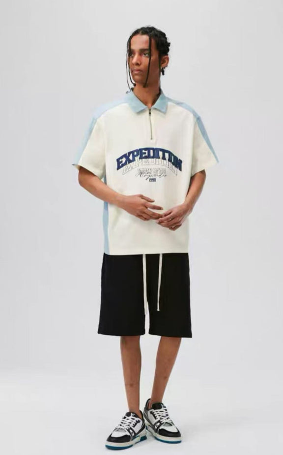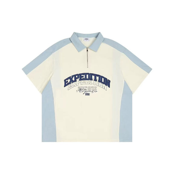 ATRY Retro Stitching Contrast Color POLO T-shirt