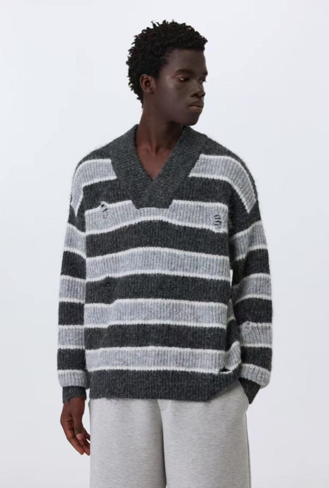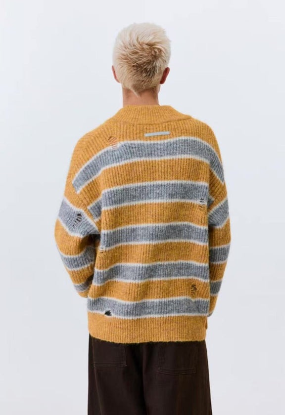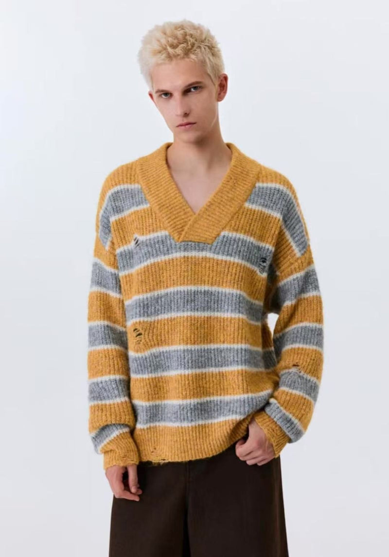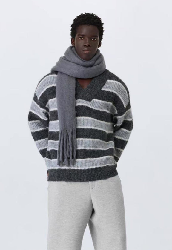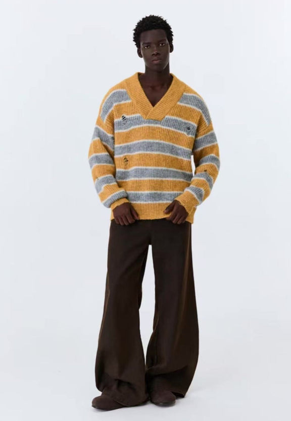 ATRY Retro Striped V-neck Sweater