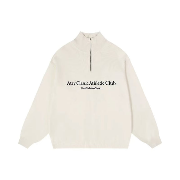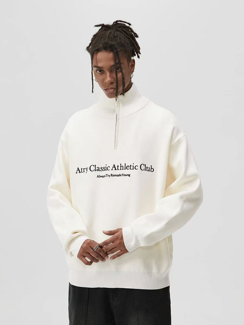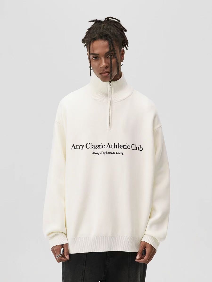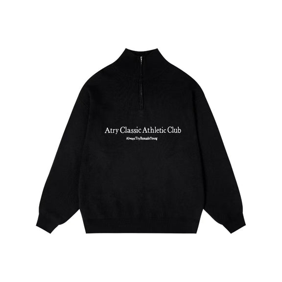ATRY Slogan Embroidered Polo Zipper Sweater