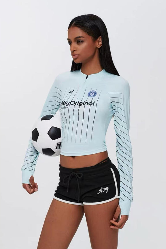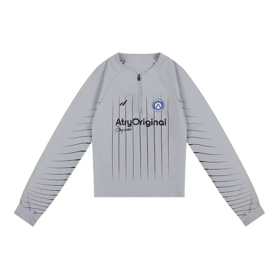 ATRY Striped Half-zip Long-sleeved T-shirt (For Women)