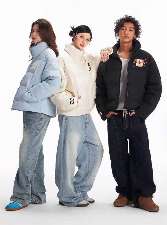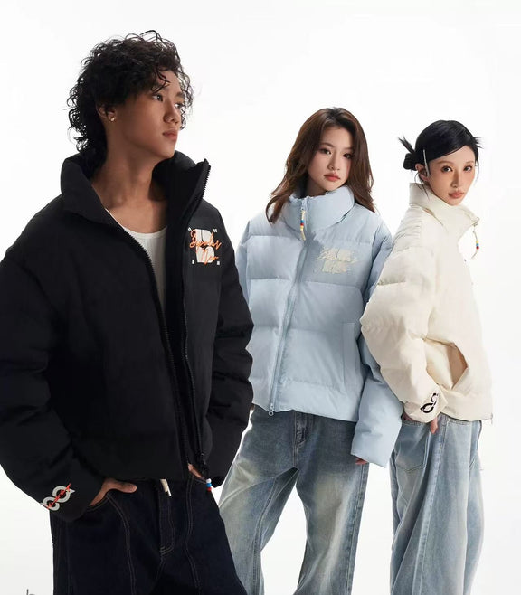 BIPOLAR Contrast Color Embroidered Letters Down Jacket